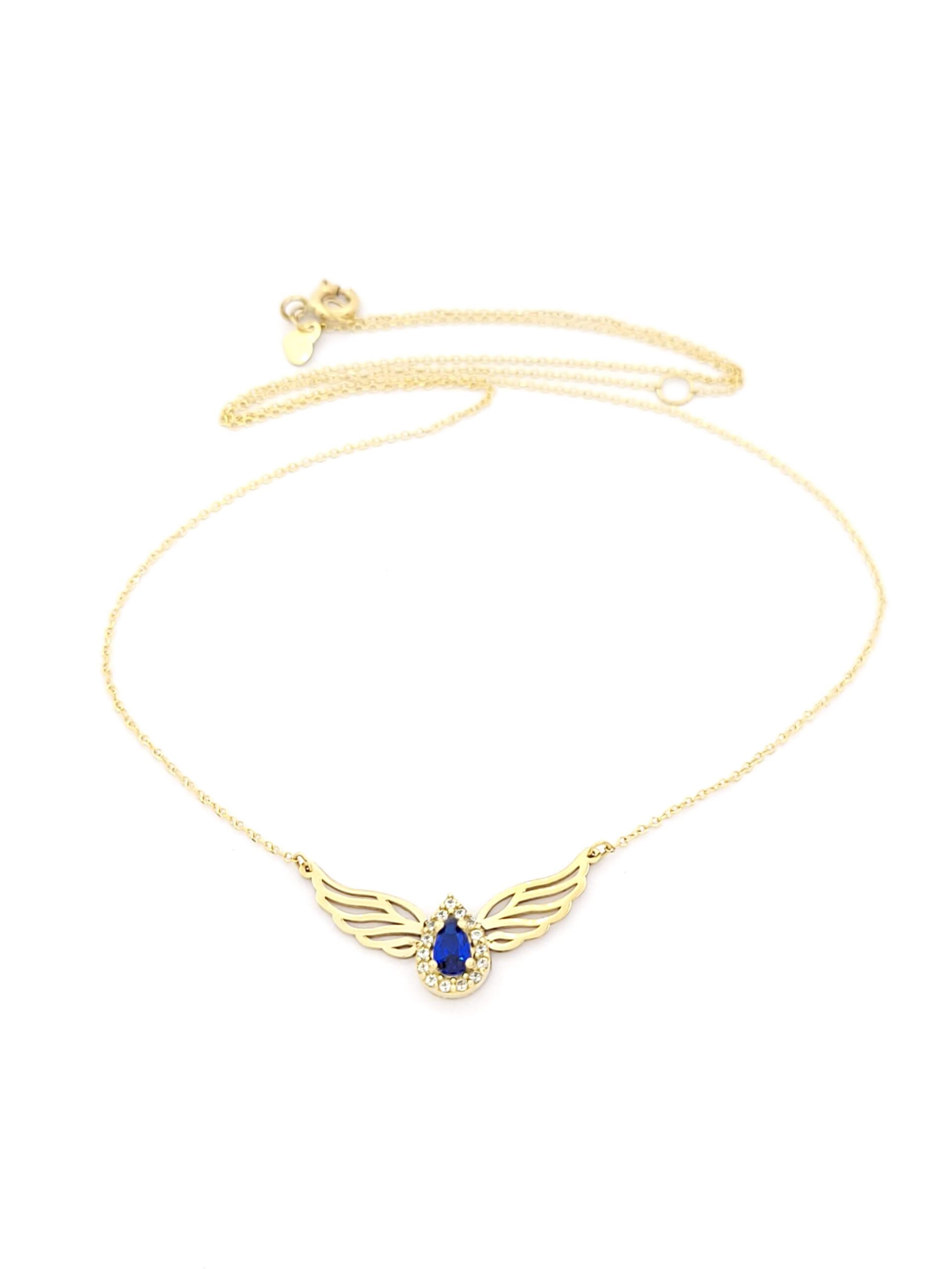 Χρυσό Γυναικείο Κολιέ Κ9 Ροζέτα,Με Δάκρυ Με Άσπρα και Μπλε Ζιργκόν και Φτερά κωδ.102553