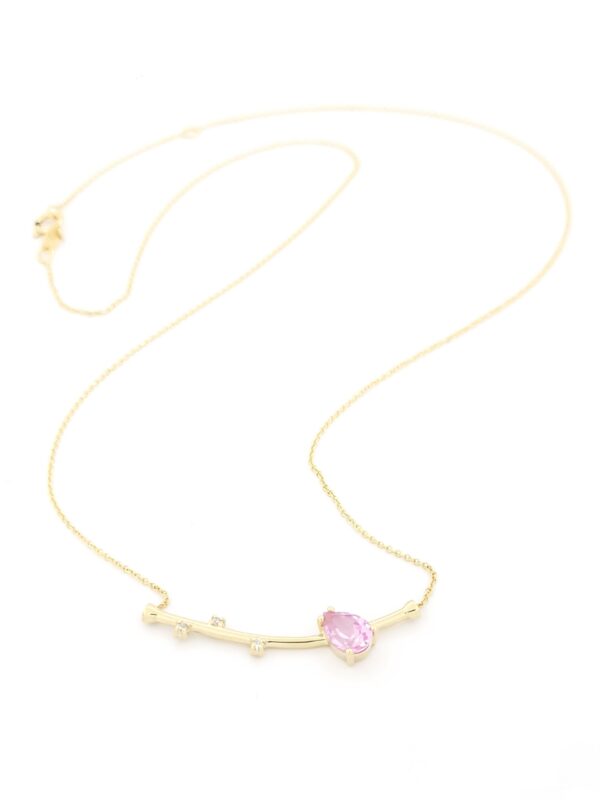 Χρυσό Γυναικείο Κολιέ MetronGold Κ14, Με Ροζ Ζαφείρι Και Διαμάντια