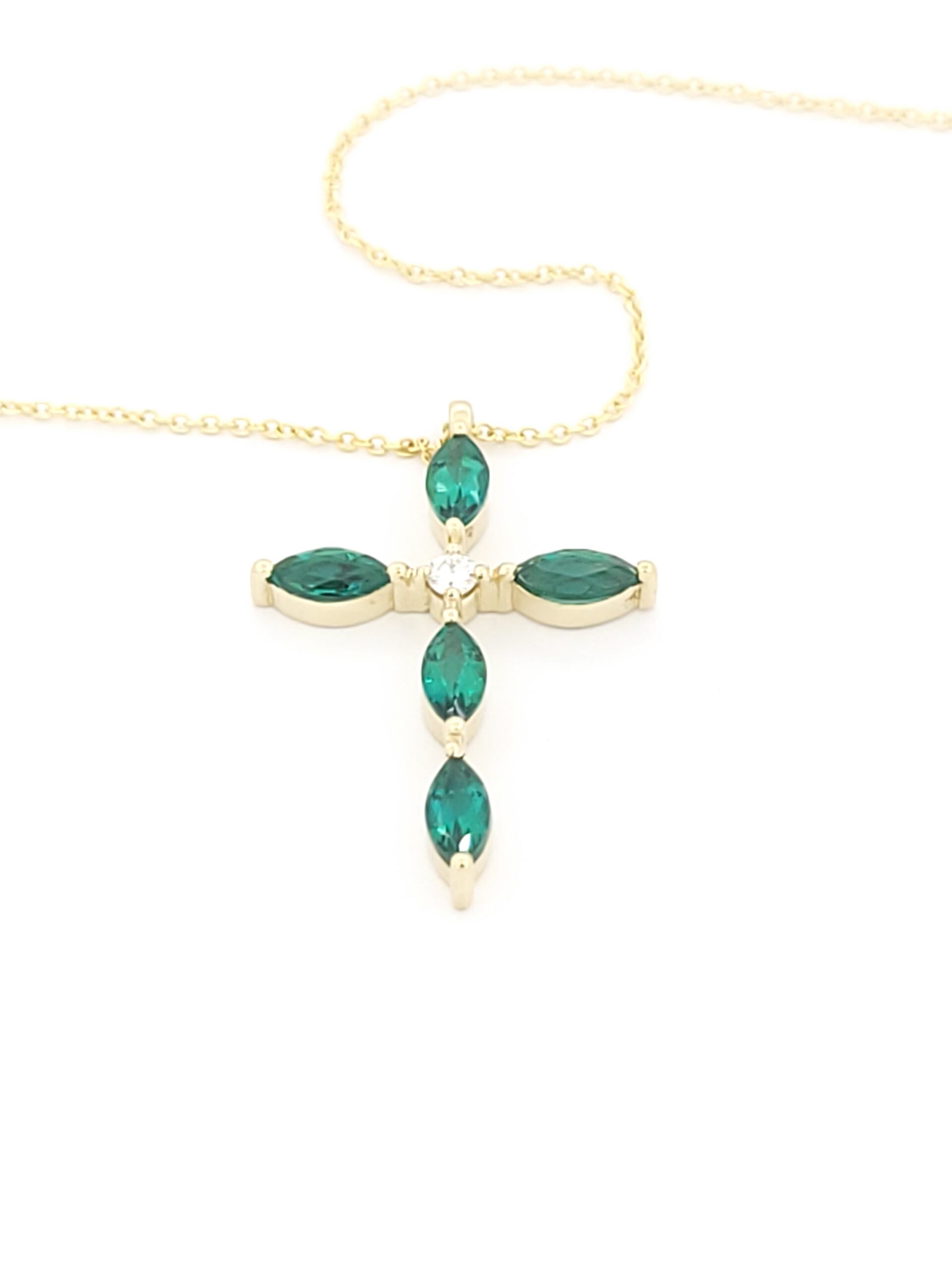 Χρυσό Γυναικείο Κολιέ MetronGold Κ14, Με Σταυρό Με Σμαράγδια κωδ.106180