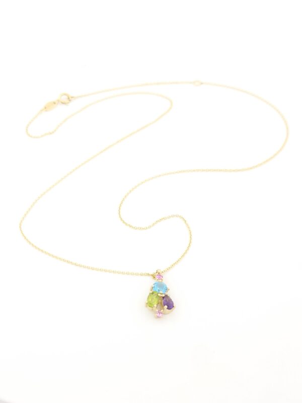 Χρυσό Γυναικείο Κολιέ MetronGold Κ14, Με Τοπάζι, Περίδοτο, Αμέθυστο Και Ροζ Ζαφείρι κωδ.106183