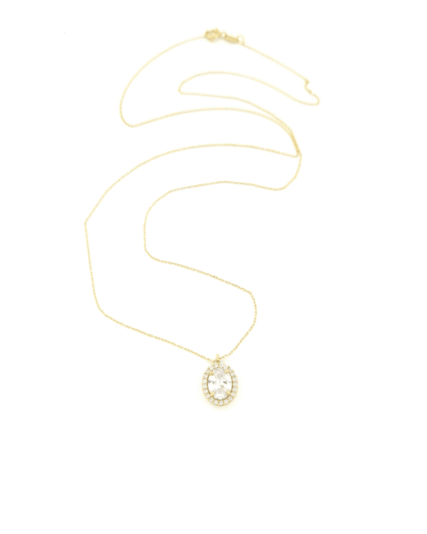 Χρυσό Γυναικείο Κολιέ Ροζέτα Κ14, Με Λευκά Ζιργκόν