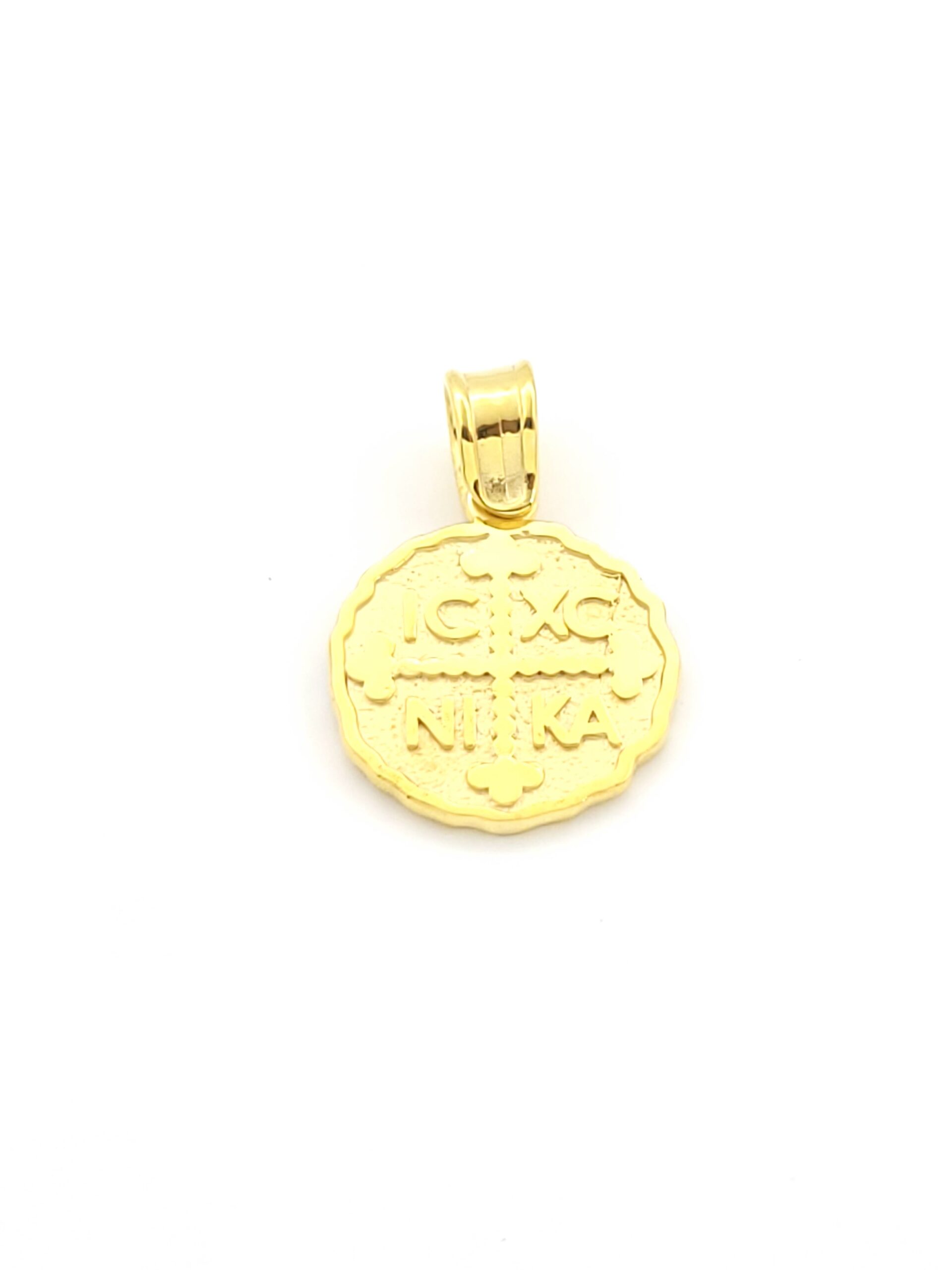 Χρυσό Κρεμαστό Διπλής Όψης K14, Με Κωνσταντινάτο Και Tην Αναπαράσταση Tων Αγίων Κωνσταντίνου Και Ελένης κωδ.109503