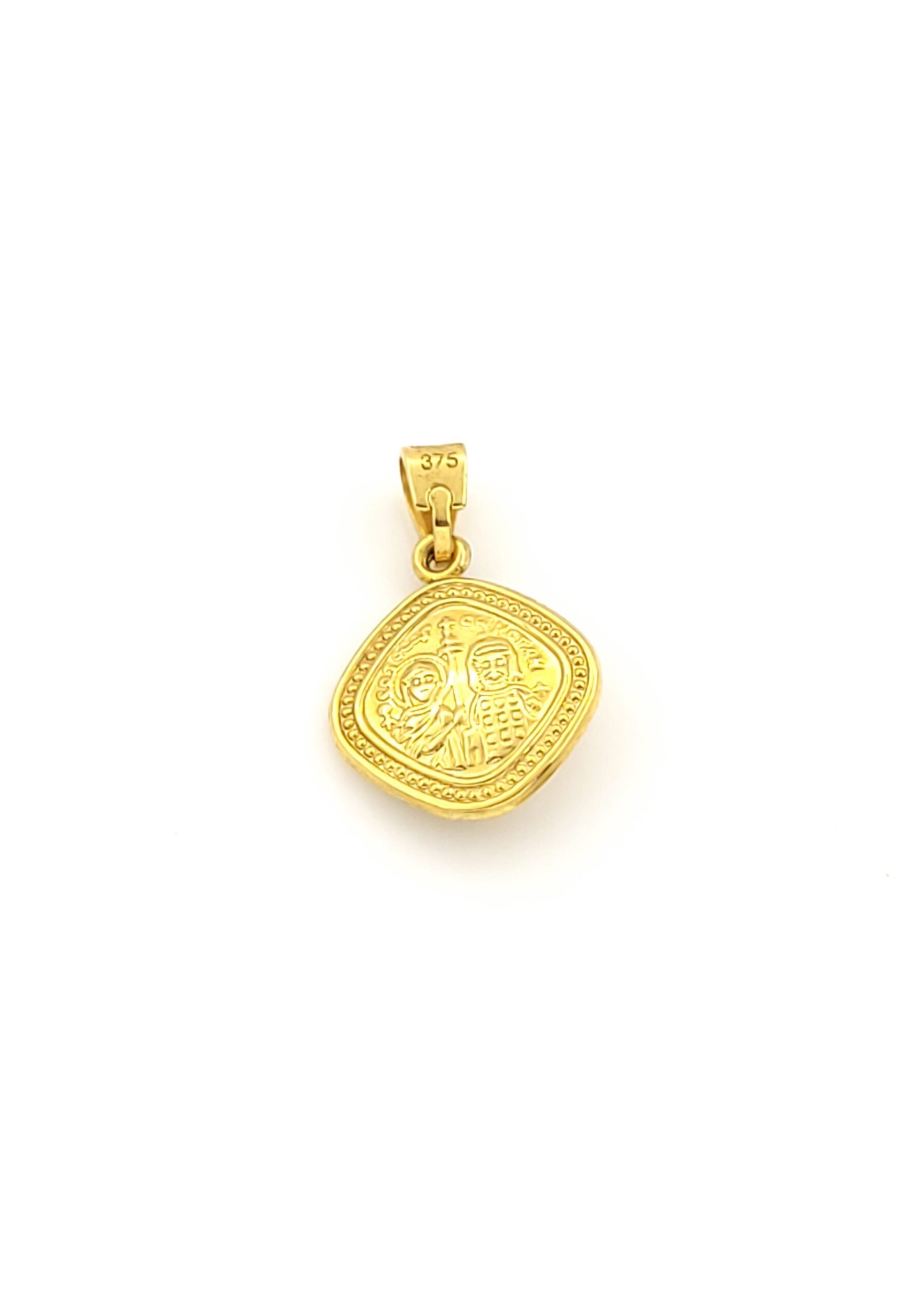 Χρυσό Γυναικείο Κρεμαστό Διπλής Οψης K9, Με Κωνσταντινάτο, Πράσινο Ζιργκόν Και την Αναπαράσταση των Αγίων Κωνσταντίνου Και Ελένης κωδ.108386