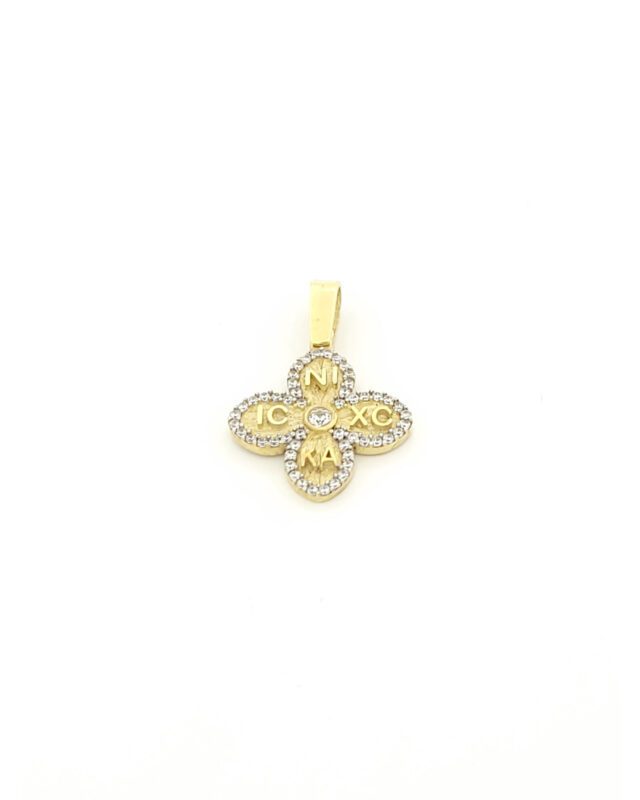 Χρυσό Γυναικείο Κρεμαστό Κ9, Σταυρός Κωνσταντινάτο Με Λευκά Ζιργκόν κωδ.109280
