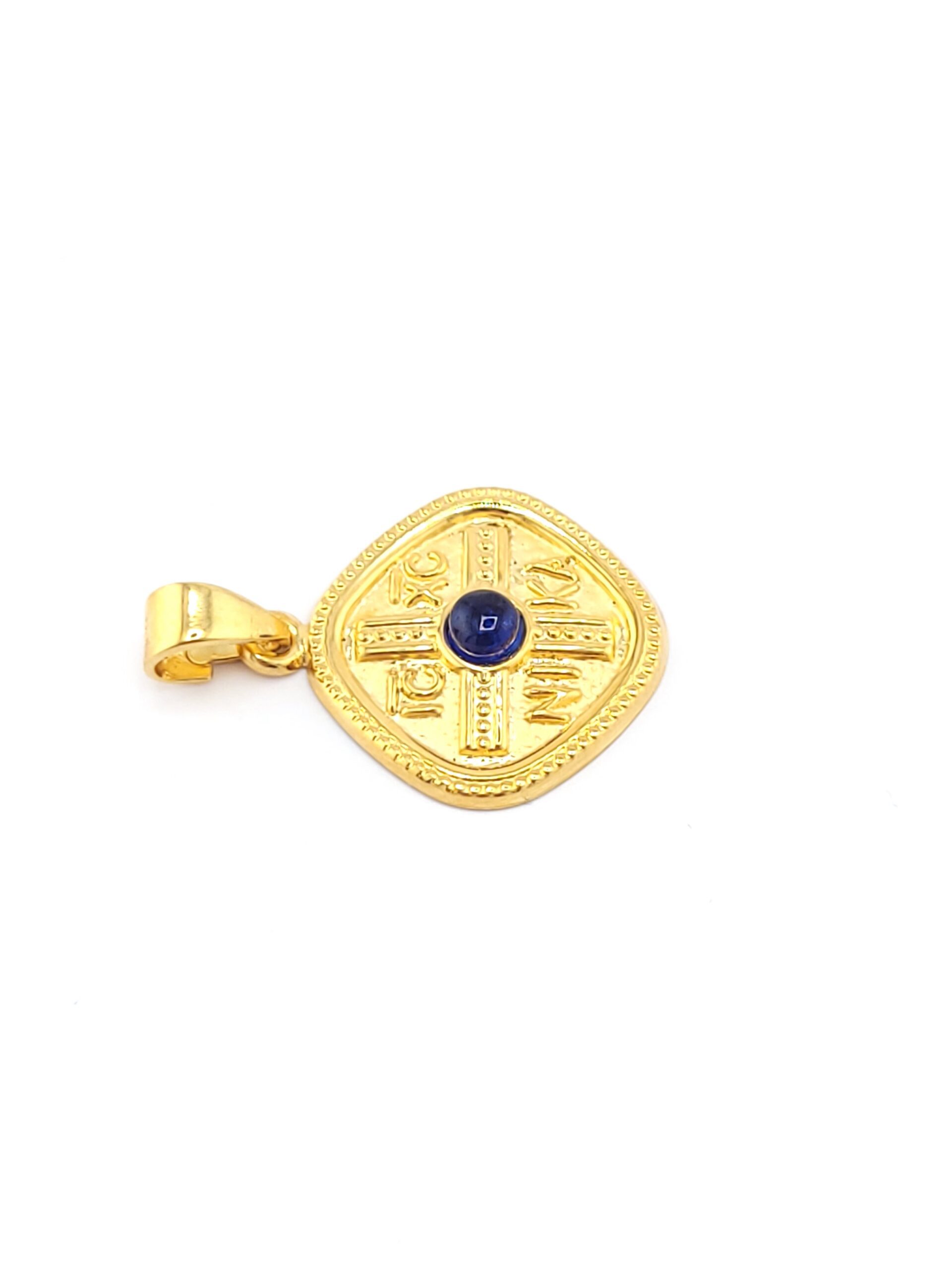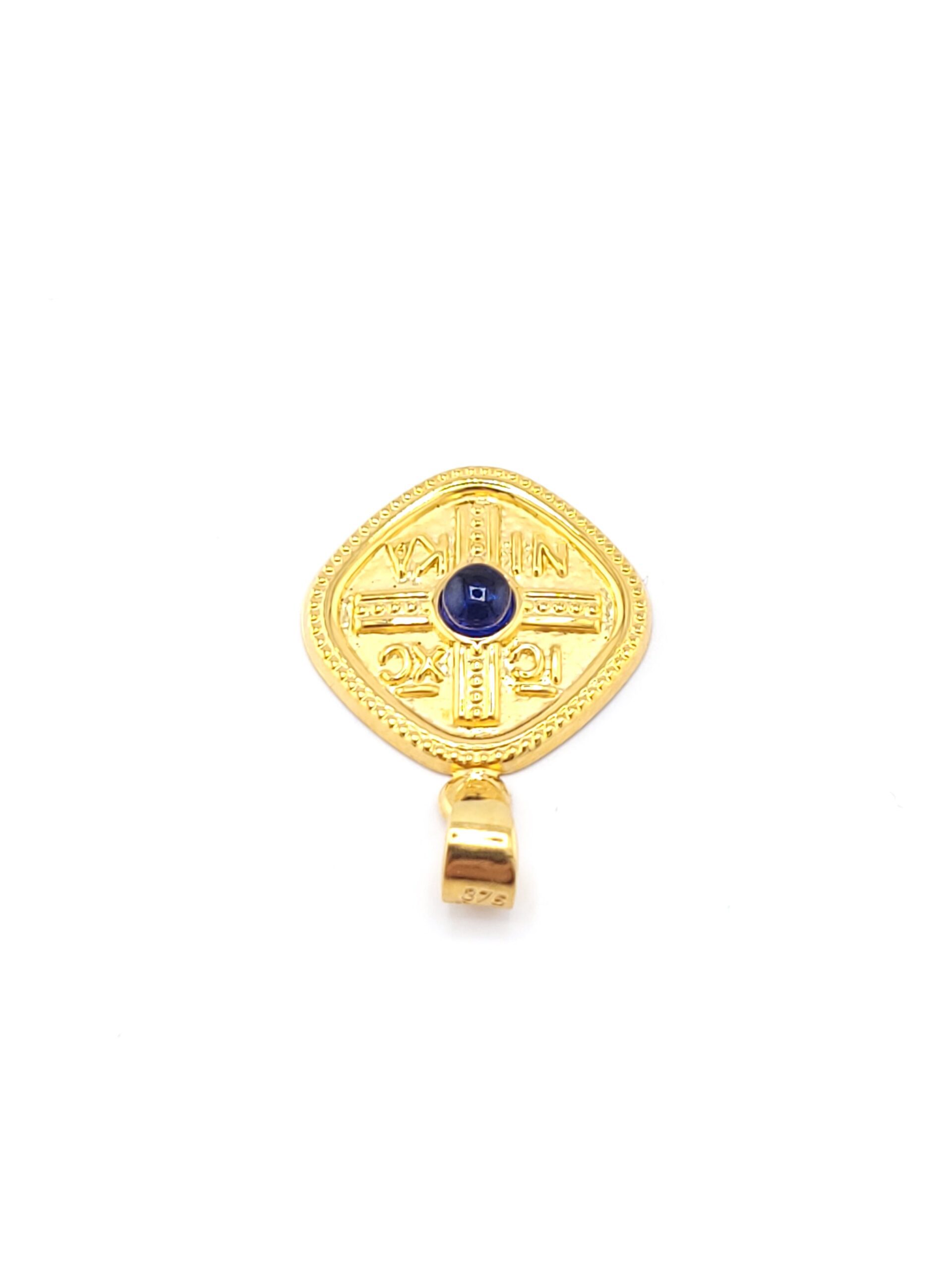 Χρυσό Γυναικείο Κρεμαστό K9, Με Κωνσταντινάτο Και Μπλε Ζιργκόν κωδ.105395