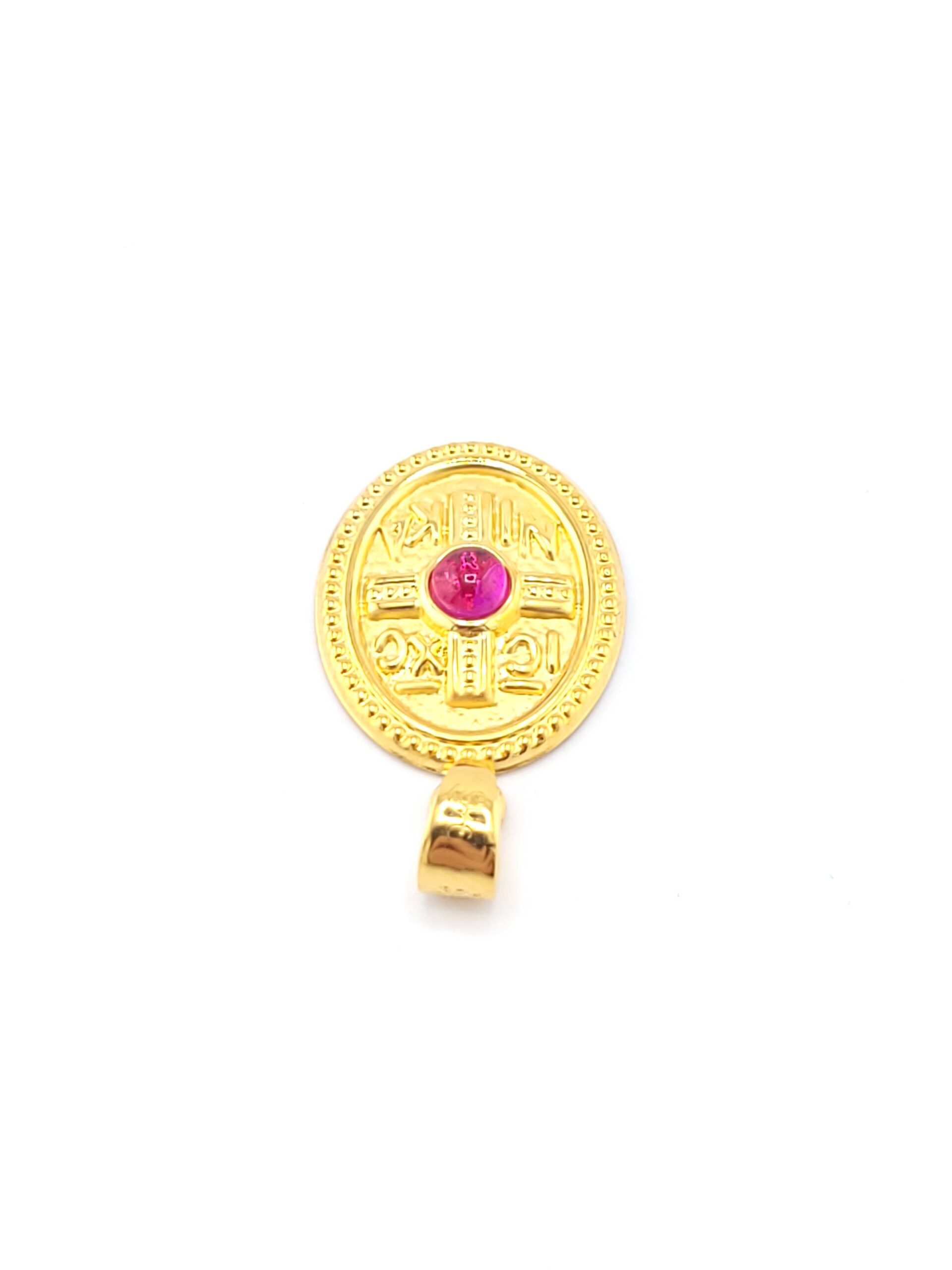 Χρυσό Γυναικείο Κρεμαστό K9, Με Κωνσταντινάτο Και Κόκκινο Ζιργκόν