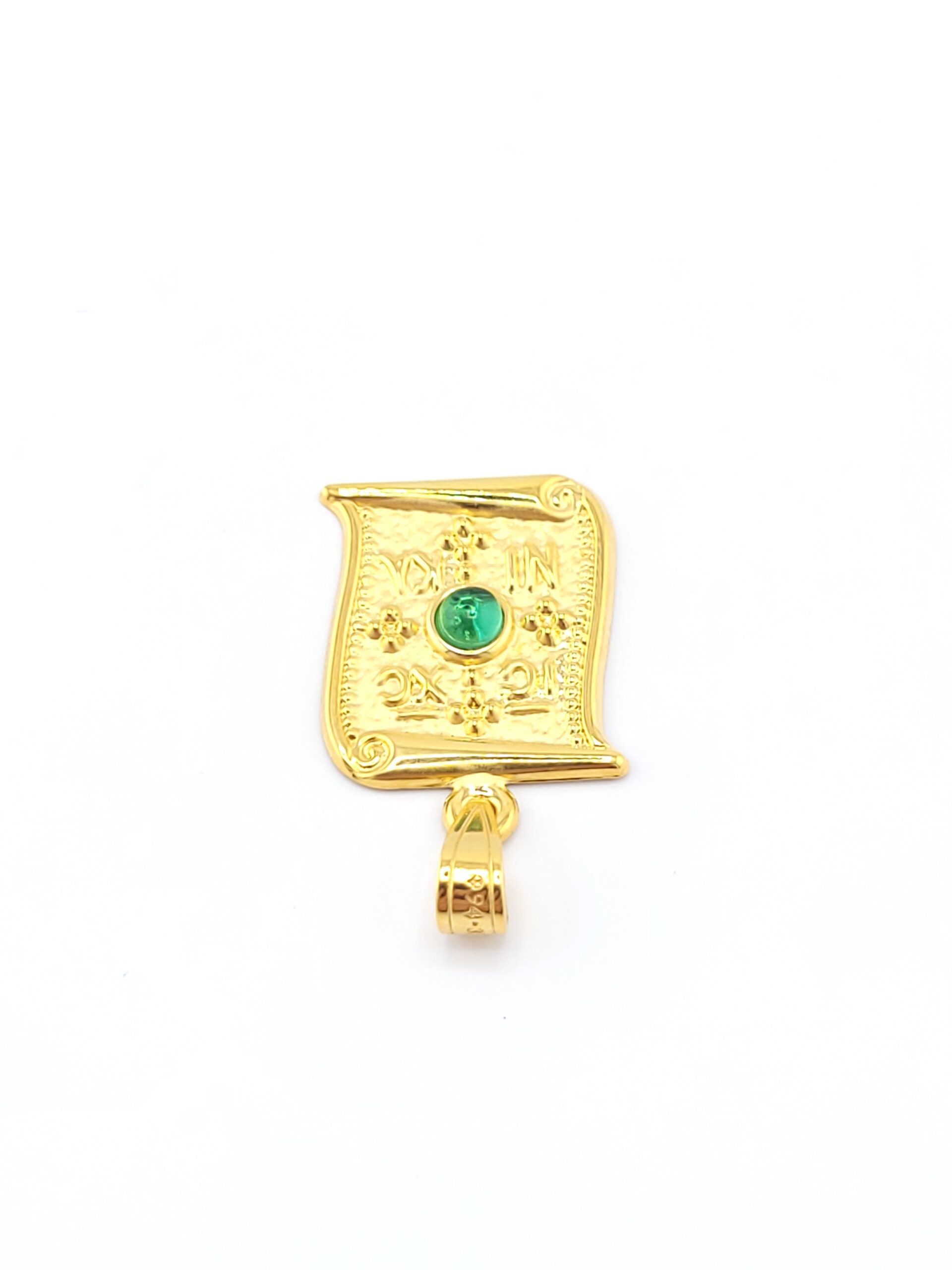 Χρυσό Γυναικείο Κρεμαστό Πάπυρος K9, Με Κωνσταντινάτο Και Πράσινο Ζιργκόν