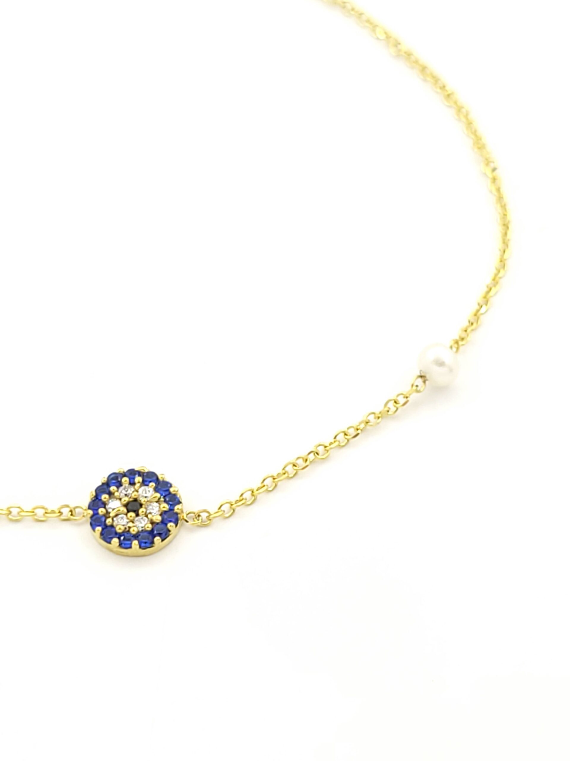 Χρυσό Γυναικείο Βραχιόλι Κ14, Με Ματάκι με Χρωματιστά Ζιργκόν και Μαργαριτάρια