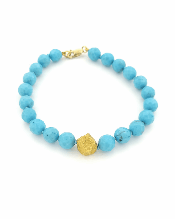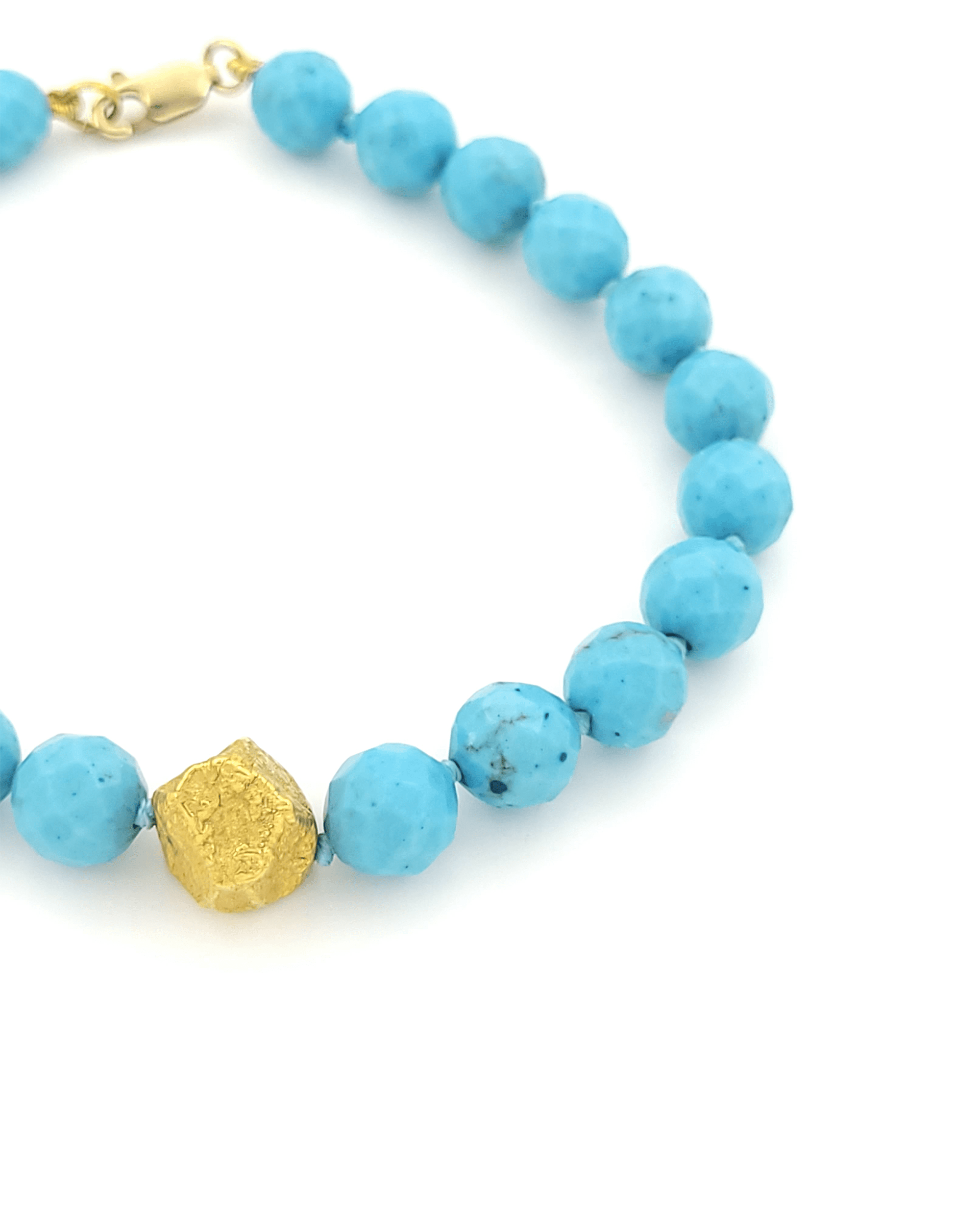 Χρυσό Γυναικείο Βραχιόλι Κ14, Με Φυσικό Τυρκουάζ