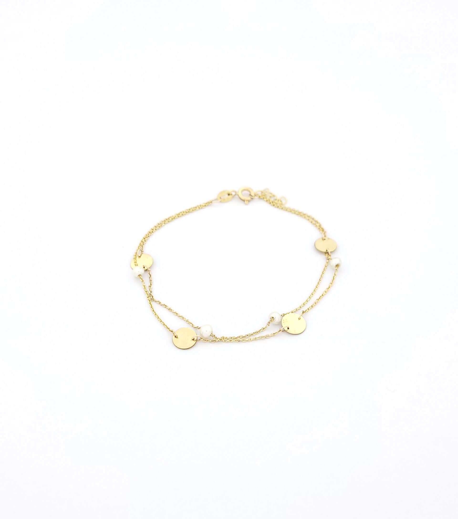 Χρυσό Γυναικείο Βραχιόλι Καγιόγλου Κ9, Με Διπλή Αλυσίδα και Μαργαριταράκια