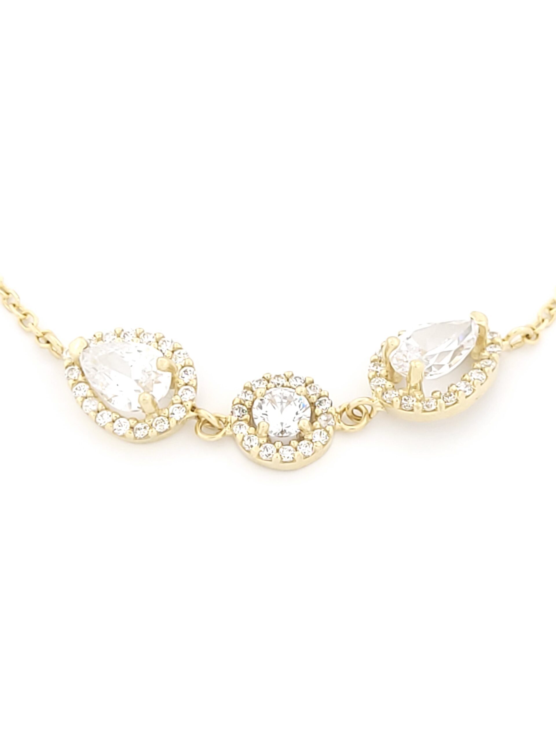 Χρυσό Γυναικείο Βραχιόλι Ροζέτα Δάκρυ Κ14, Με Λευκά Ζιργκόν