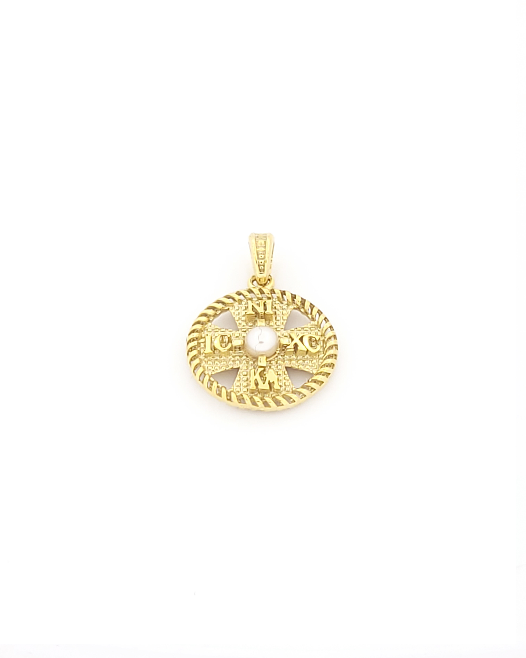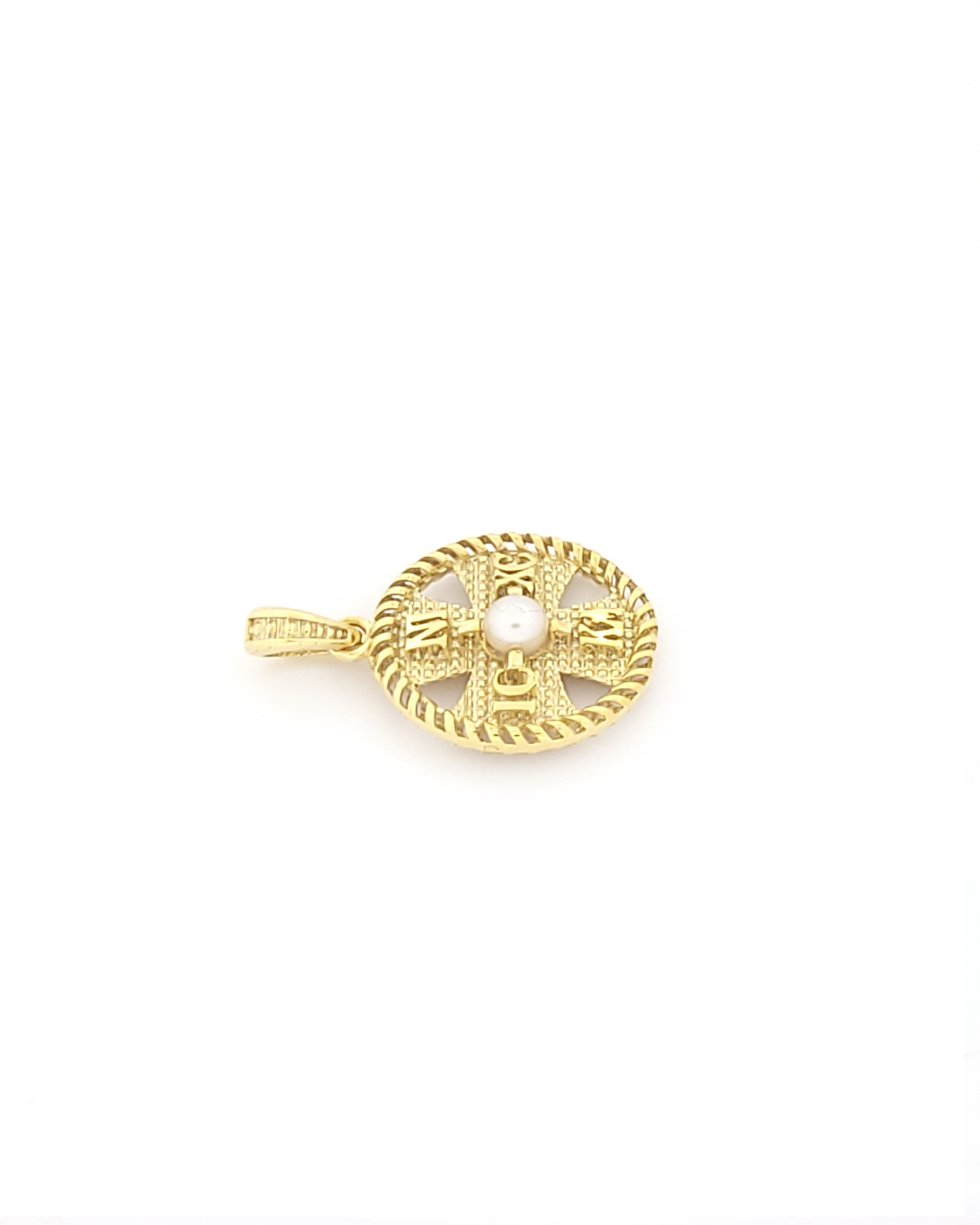 Χρυσό Κρεμαστό Διπλής Όψης Κ14, Με Κωνσταντινάτο Και Μαργαριτάρι κωδ.109777