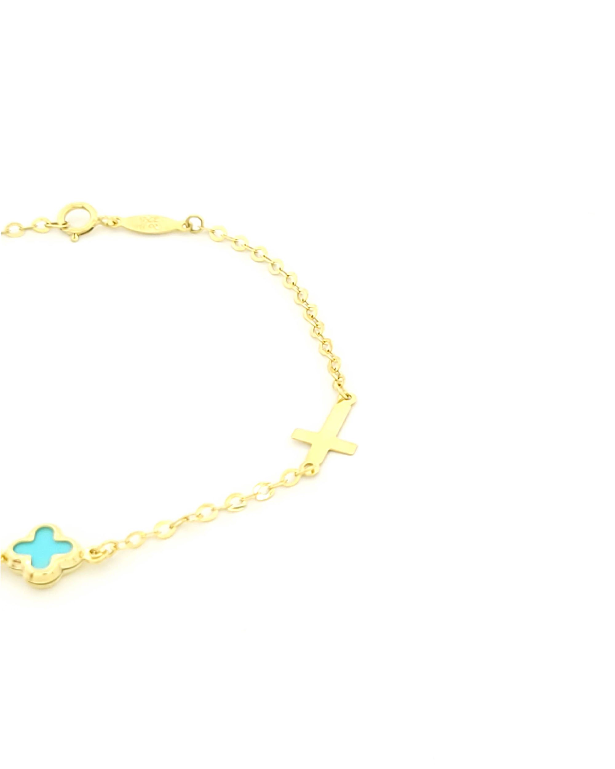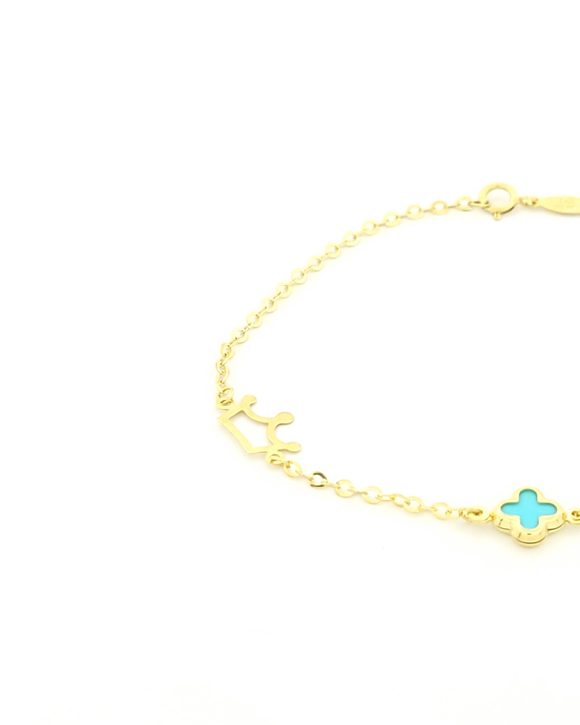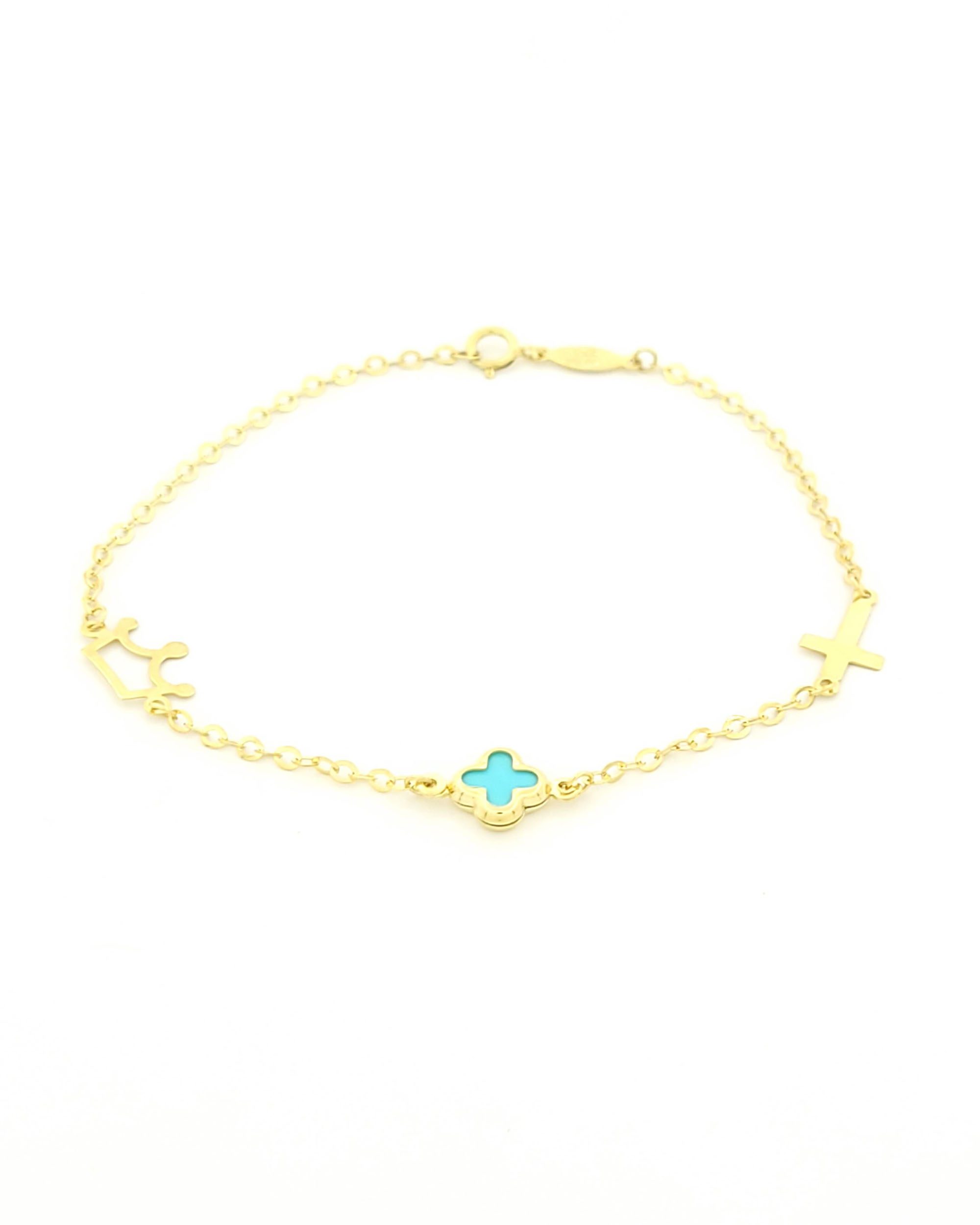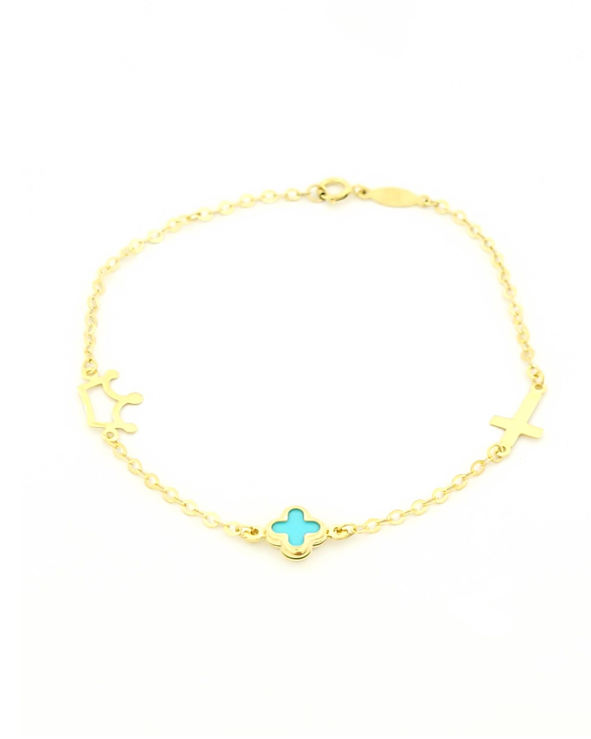 Χρυσό Παιδικό Βραχιόλι Κ9, Με Γαλάζιο Σταυρουδάκι, Σταυρουδάκι Και Κορώνα κωδ.109213