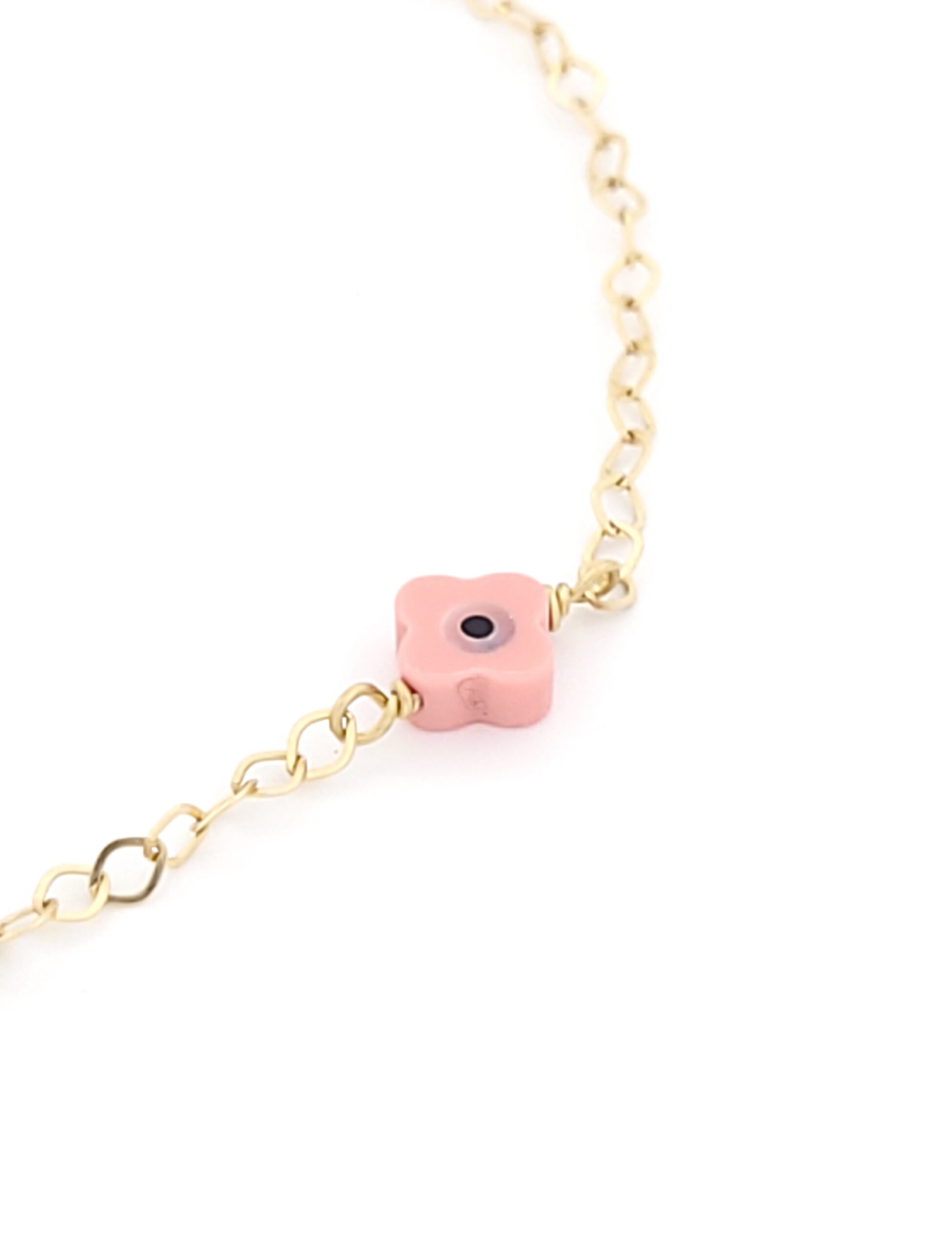 Χρυσό Παιδικό Βραχιόλι Κ9, Με Ματάκι, Με Ροζ Πέτρες Και Καρδιά Με Ροζ Σμάλτο κωδ.105453