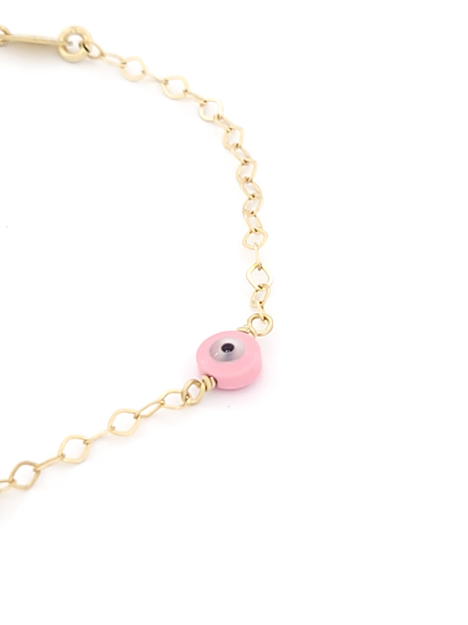 Χρυσό Παιδικό Βραχιόλι Κ9, Με Ματάκι, Με Ροζ Πέτρες Και Πεταλούδα Με Ροζ Σμάλτο κωδ.105547
