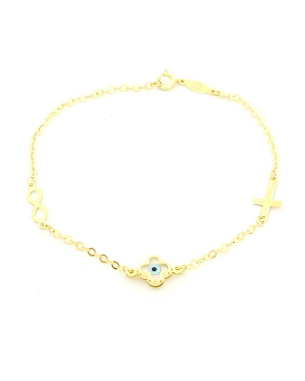 Χρυσό Παιδικό Βραχιόλι Κ9, Με Σταυρουδάκι, Άπειρο Και Ματάκι Σταυρουδάκι κωδ.109214