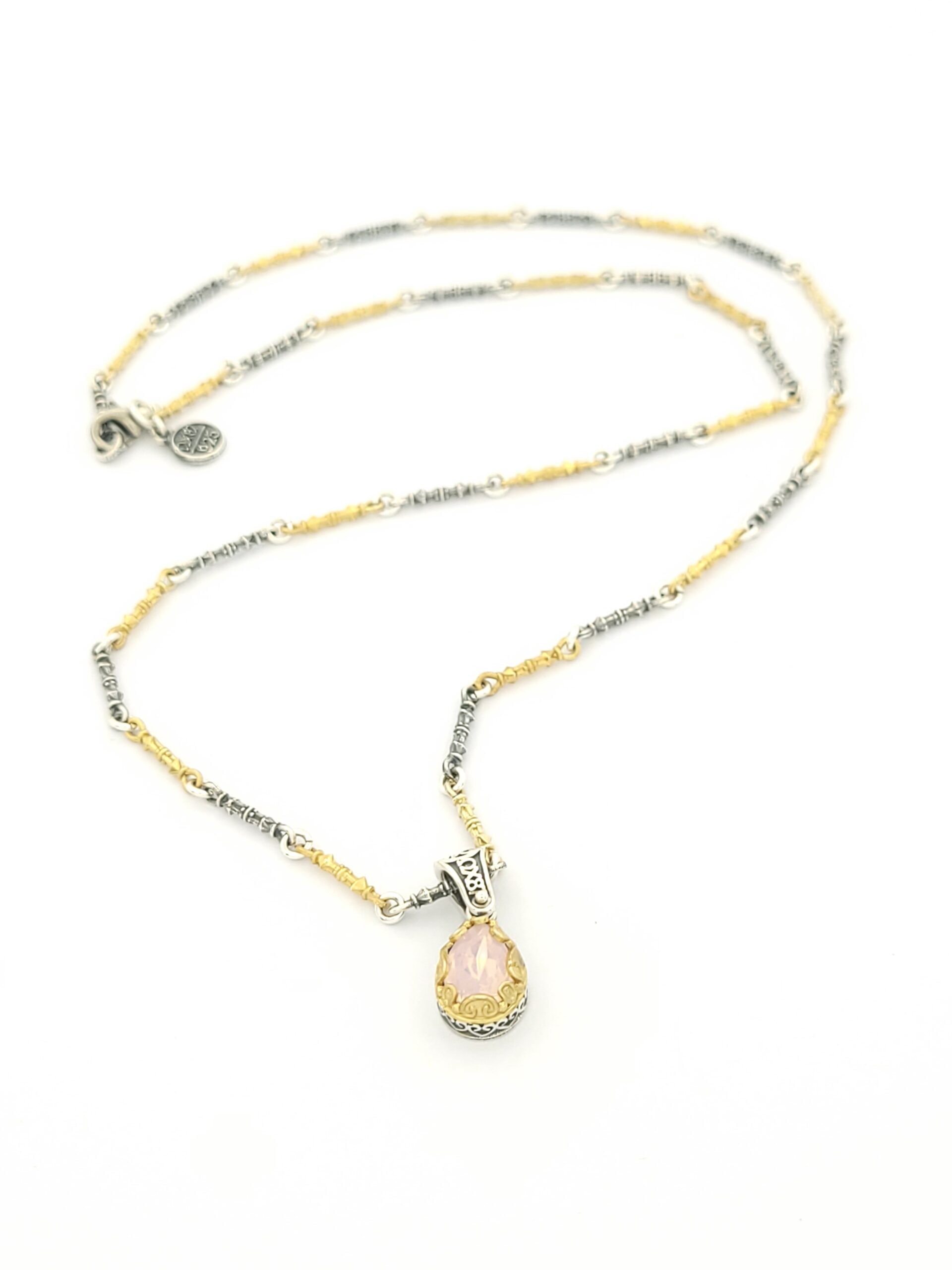 Ασημένιο Γυναικείο Κολιέ Dimitrios-Exclusive Με Δίχρωμη Αλυσίδα, Δάκρυ Και Ροζ Κρύσταλλο κωδ.M48