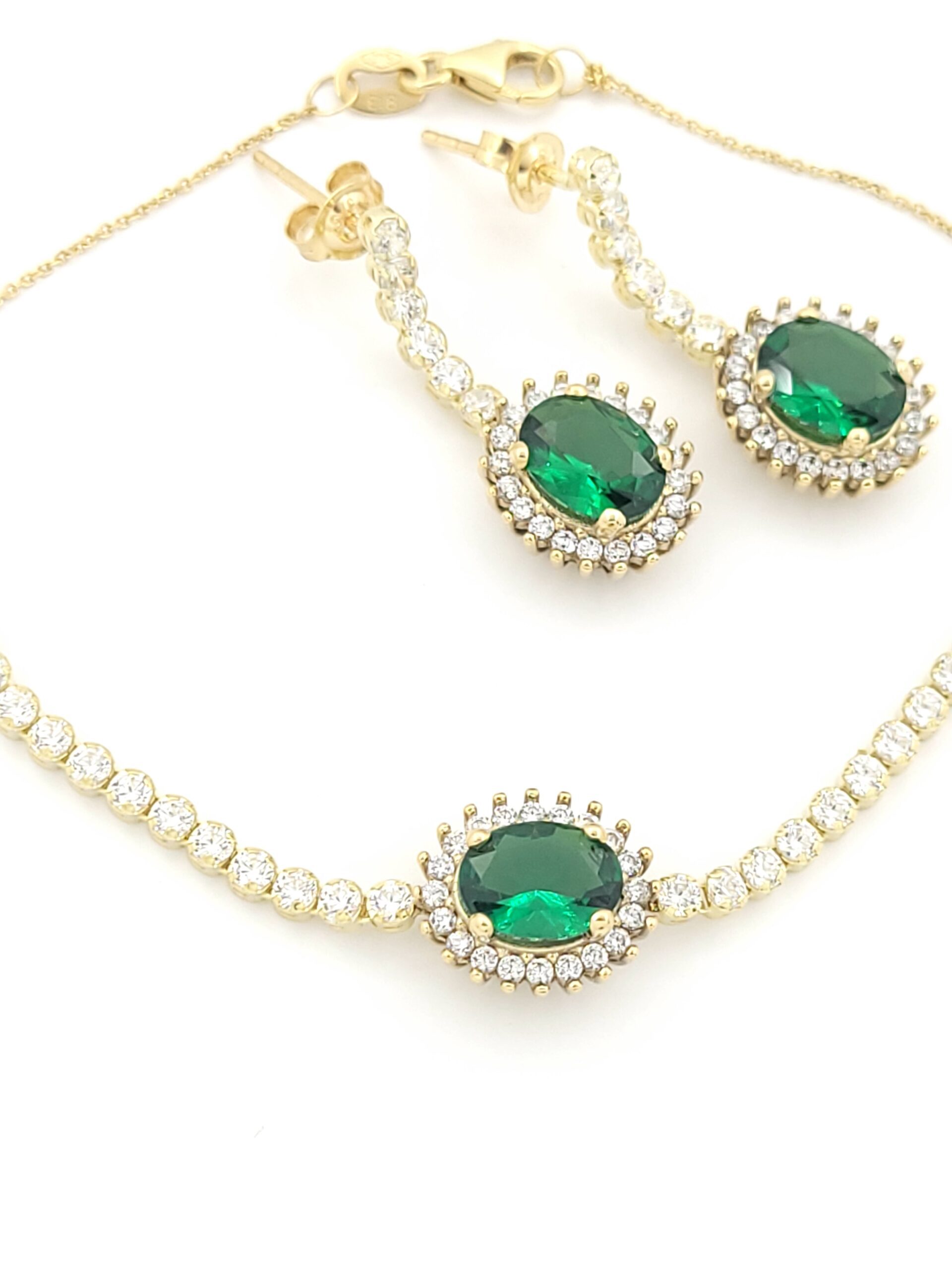 Χρυσό Σετ Κοσμημάτων Κ9 , Με Λευκά Και Πράσινα Ζιργκόν