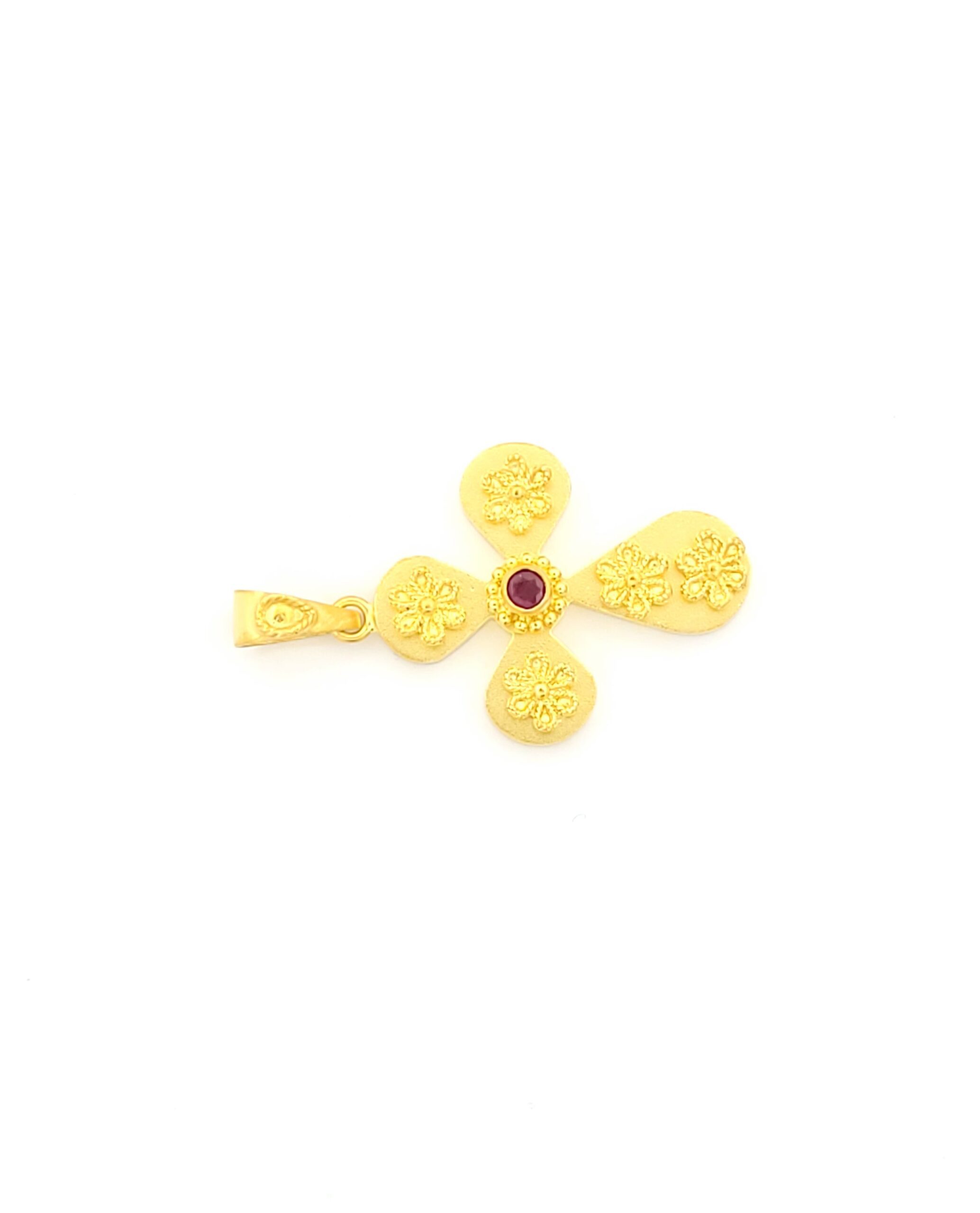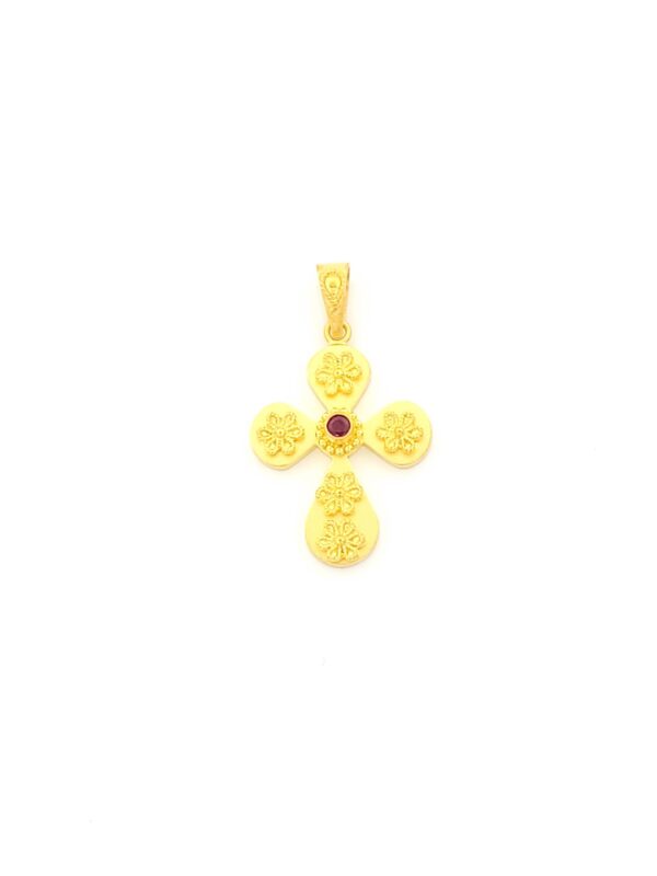 Χρυσός Γυναικείος Σταυρός Χειροποίητος Βυζαντινός Κ14, Με Ρουμπίνι