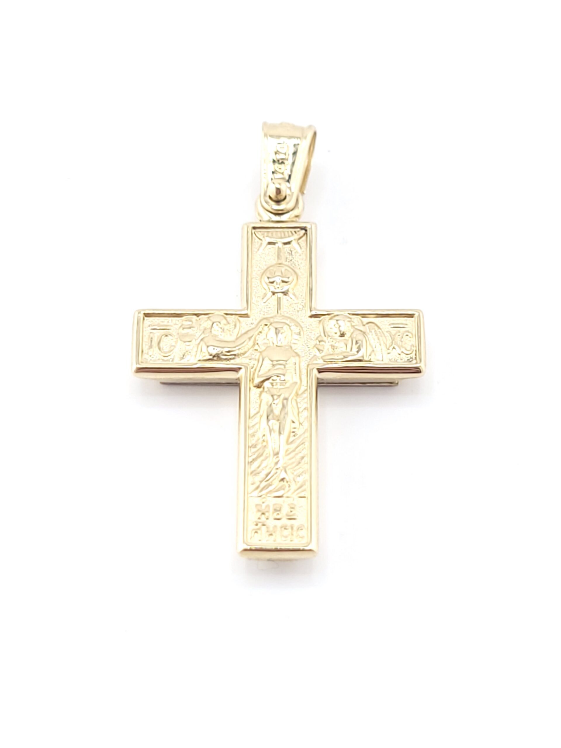 Xρυσός Ανδρικός Σταυρός Κ14 Διπλής Όψης Με Αναπαράσταση Βάφτισης, κωδ.109720