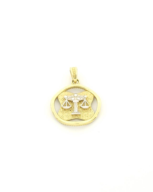 Χρυσό Δίχρωμο Γυναικείο Κρεμαστό K9 Διπλής όψης, Με Ζώδιο Ζυγό Και Κωνσταντινάτο κωδ.109190