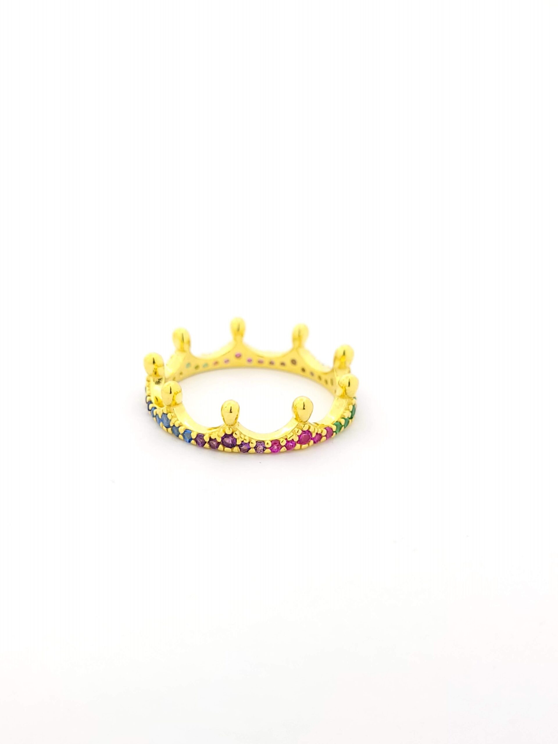Γυναικείο Ασημένιο Επιχρυσωμένο Δαχτυλίδι Κορώνα της Silver Union, Με Πολύχρωμα Ζιργκόν