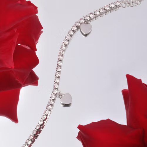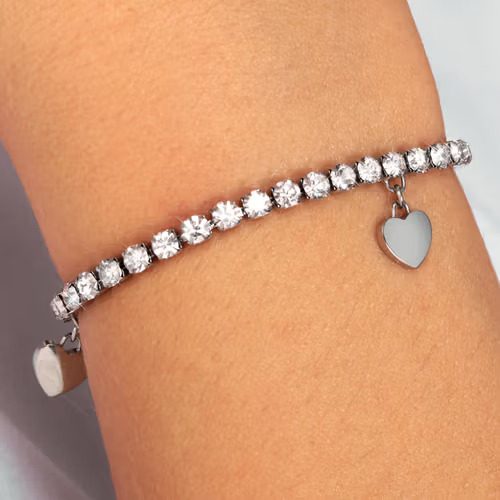 Γυναικείο Ατσάλινο Βραχιόλι Sector Tennis, Με Λευκά Ζιργκόν και Καρδιά