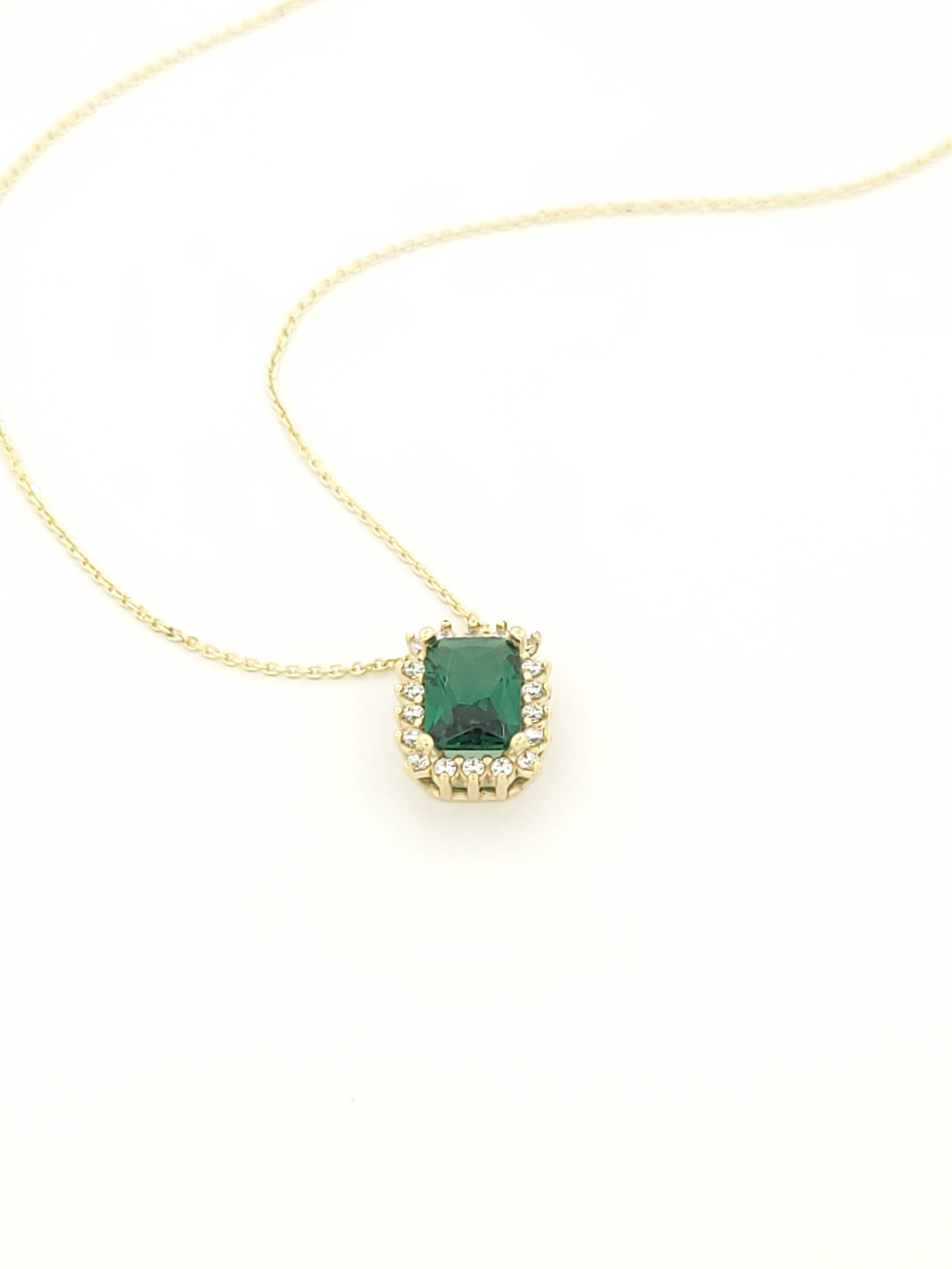 Γυναικείο Χρυσό Κολιέ Κ14 Της Filva, Με Πράσινο Και Λευκά Ζιργκόν κωδ.106488