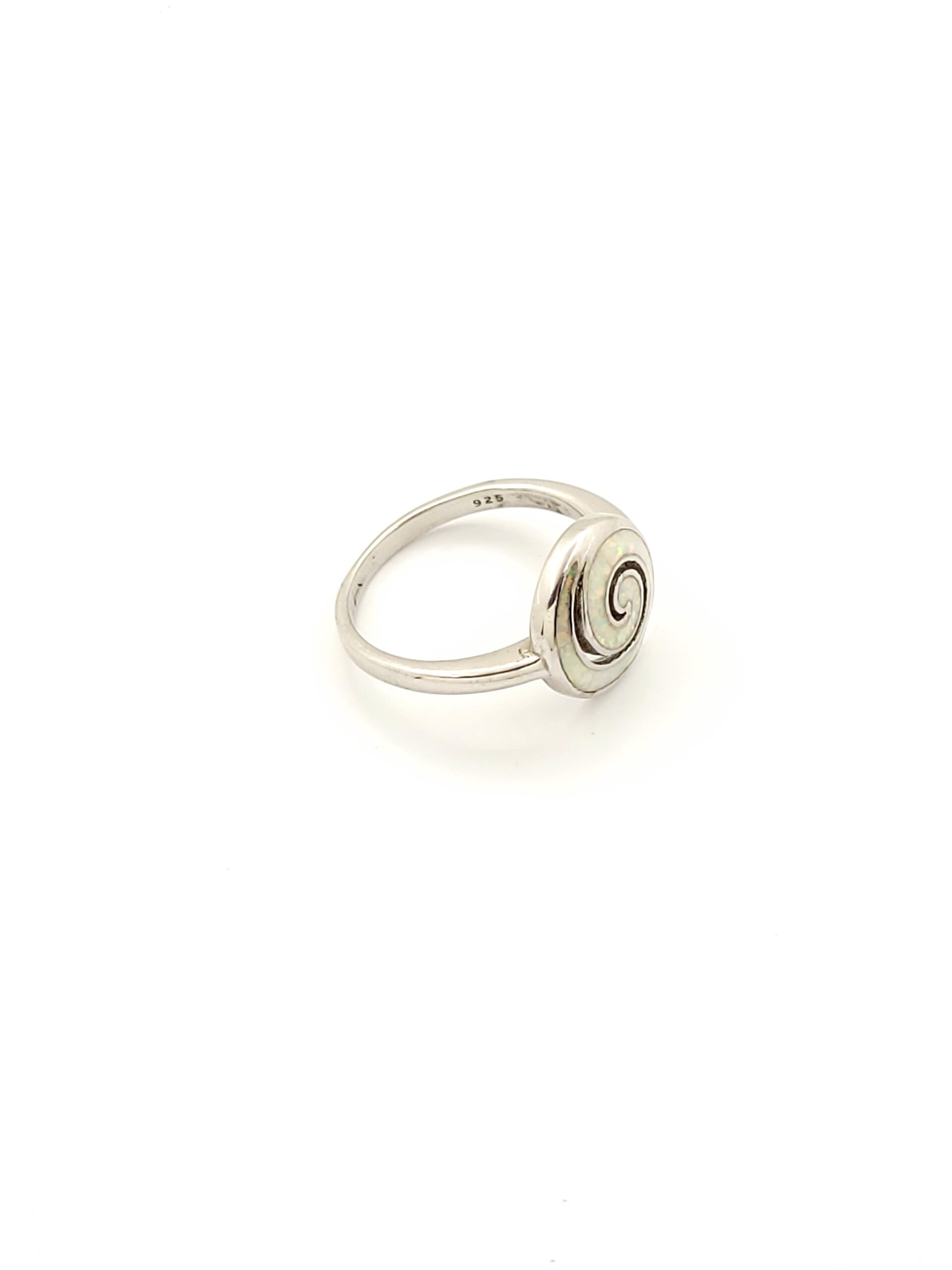 Ασημένιο Γυναικείο Δαχτυλίδι, Με Σπείρα Με Λευκό Οπάλιο