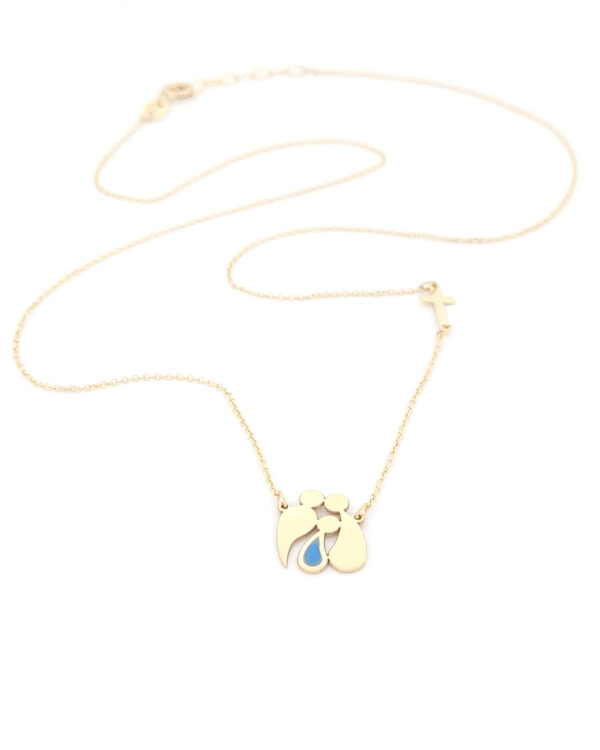 Γυναικείο Χρυσό Κολιέ Κ14,Με Τριμελή Οικογένεια Με Μπλε Σμάλτο Και Σταυρουδάκι