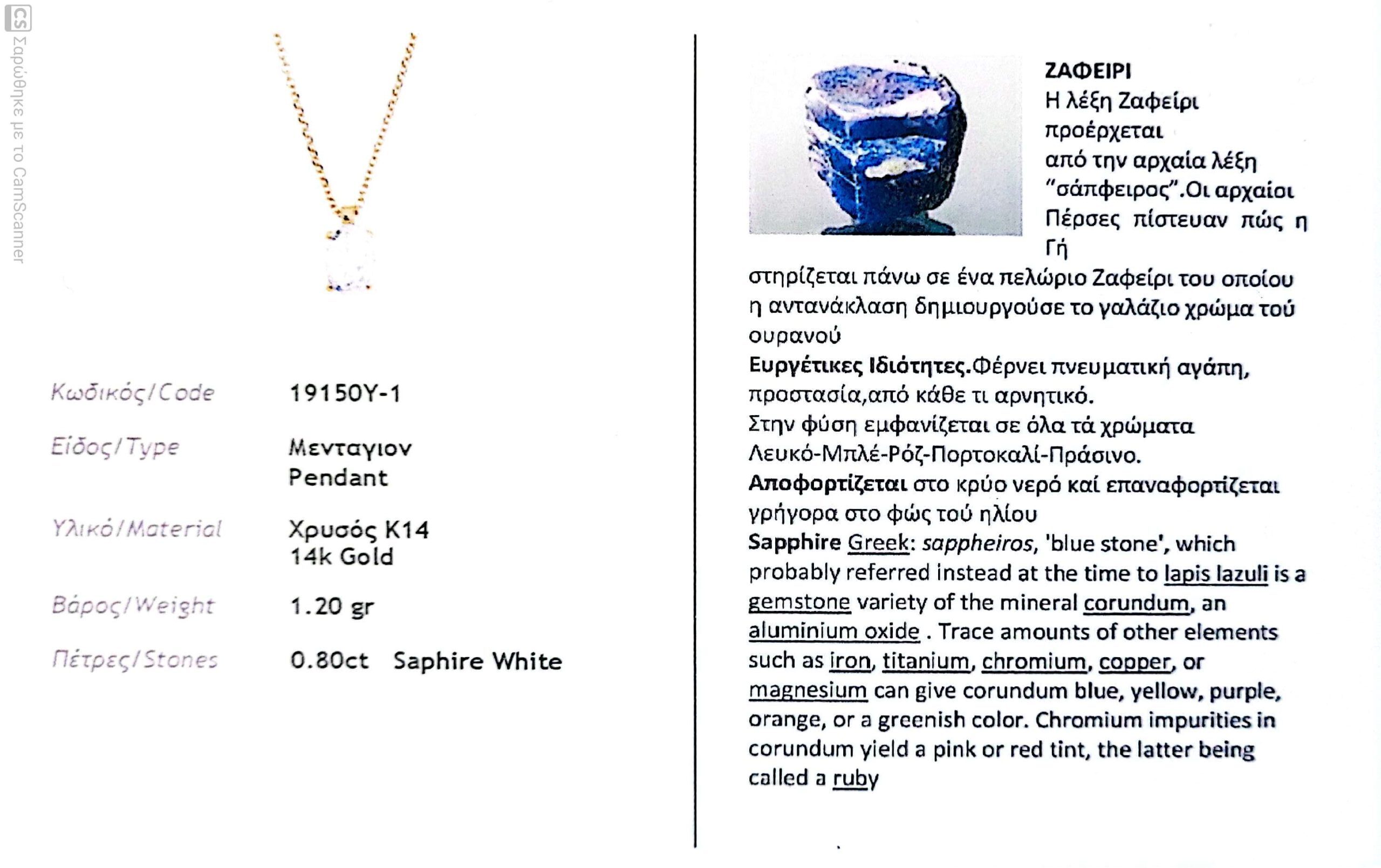 Γυναικείο Χρυσό Κολιέ MetronGold Κ14 Με Zαφείρι κωδ.1915Y-1