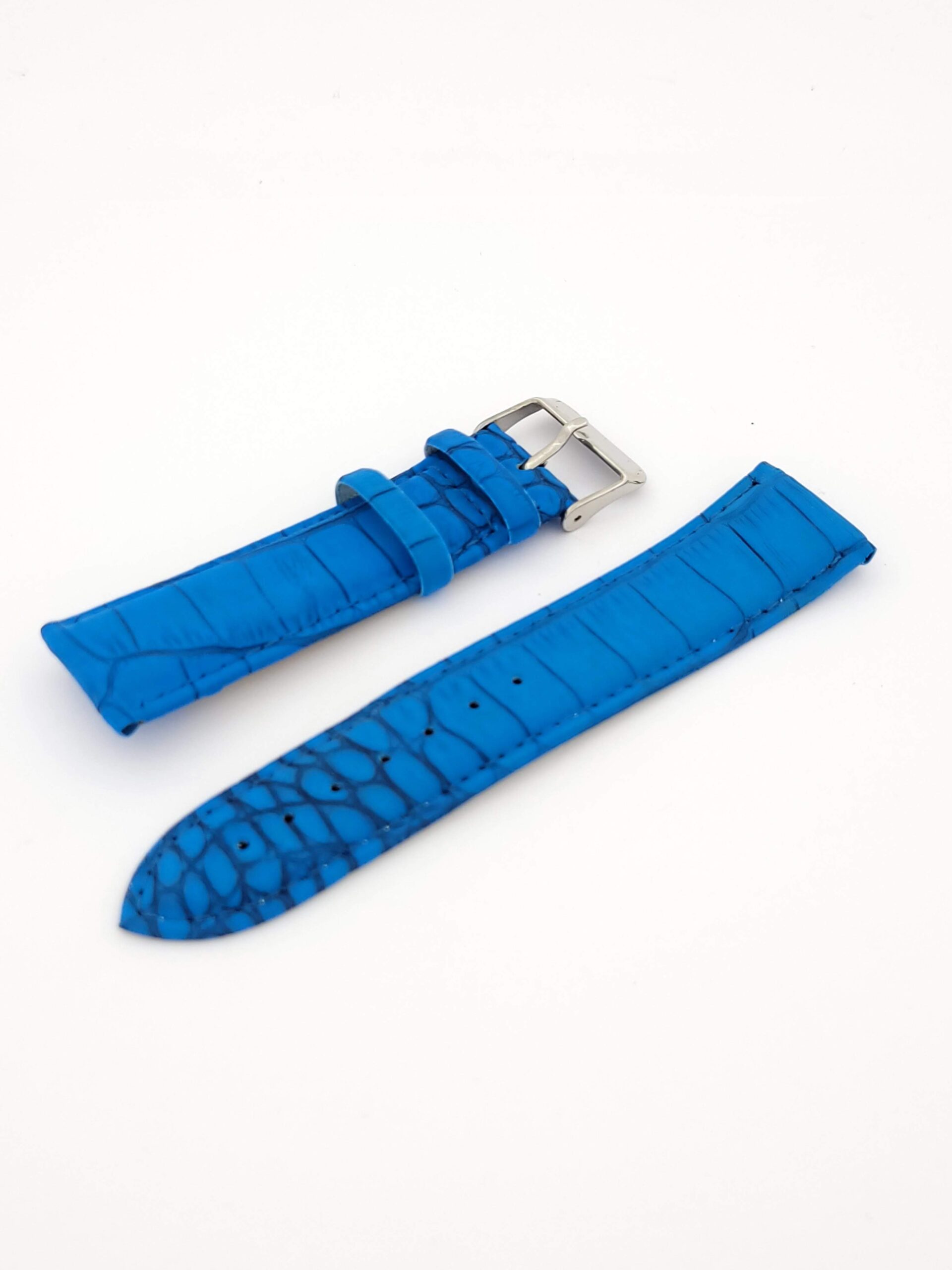 Λουρί Δερμάτινο Μπλε Κροκό, No22 με Ασημί Τοκά κωδ.TZ22.B.C