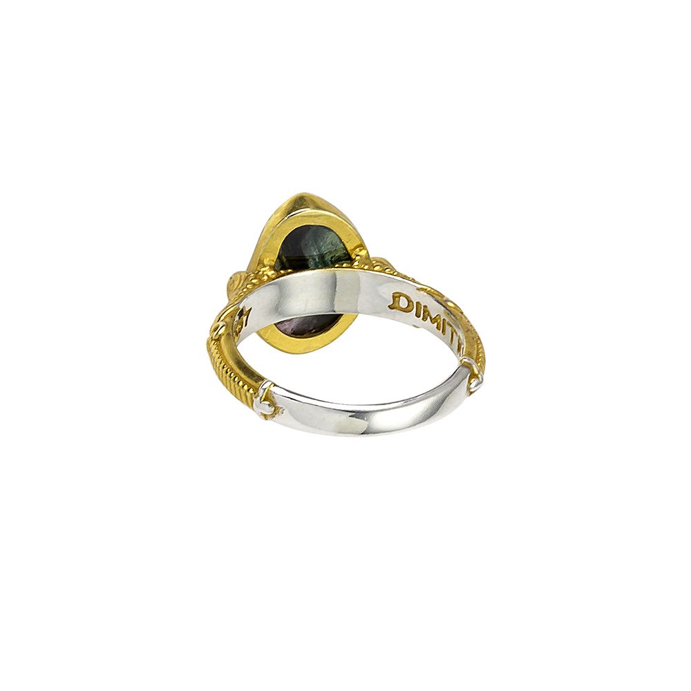 Γυναικείο Δίχρωμο Ασημένιο Δαχτυλίδι Dimitrios-Exclusive Με Πράσινη Πέτρα Τουρμαλίνη κωδ.D145