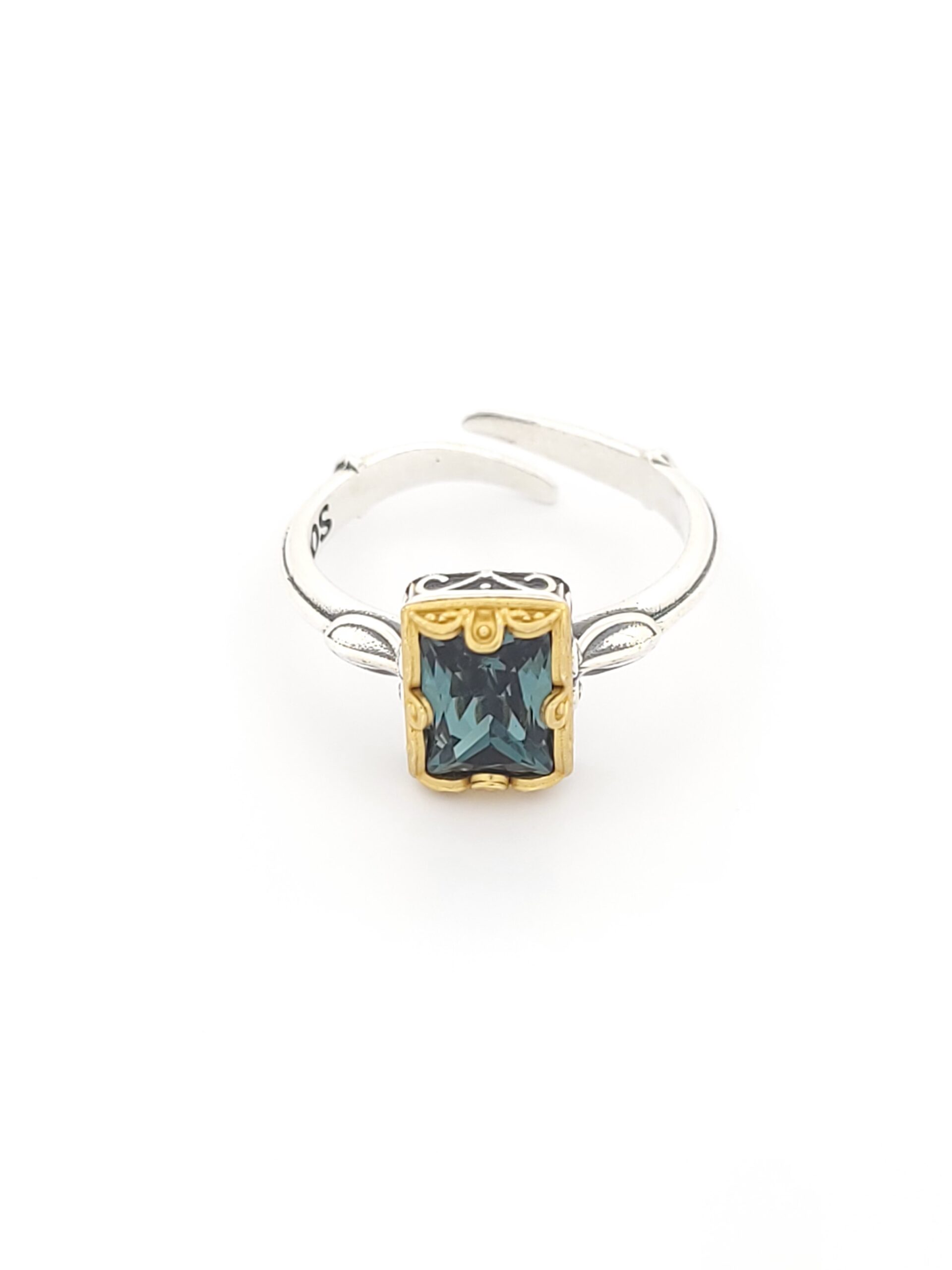 Γυναικείο Δίχρωμο Δαχτυλίδι Dimitrios-Exclusive, Με Μπλε Πέτρα Swarovski κωδ.D51