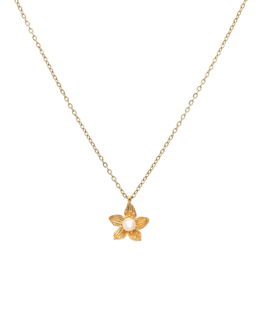 Γυναικείο Κολιέ της LifeLikes, Με Ατσάλινη Επιχρυσωμένη Αλυσίδα Και Ορειχάλκινο Επιχρυσωμένο Κρεμαστό Λουλούδι με Πέρλα