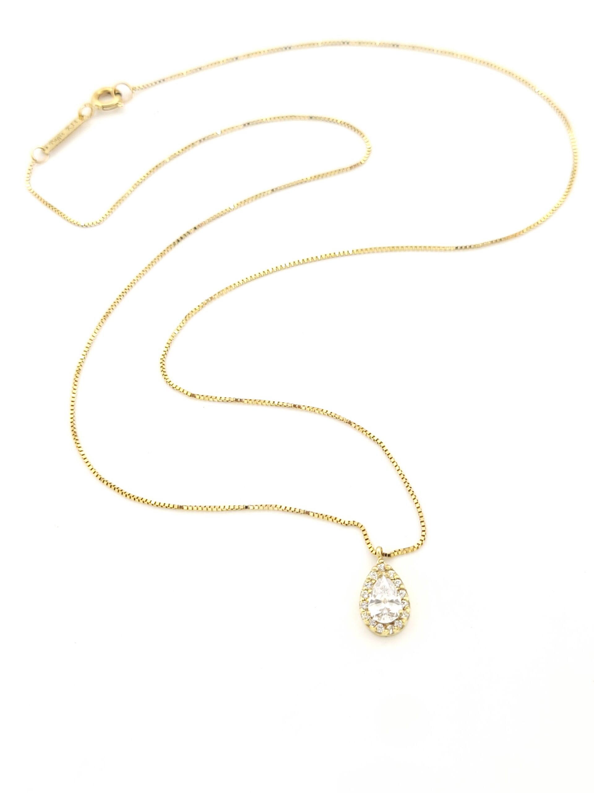Χρυσό Γυναικείο Κολιέ Κ14 ,Δάκρυ Ροζέτα Με Λευκά Ζιργκόν κωδ.107895