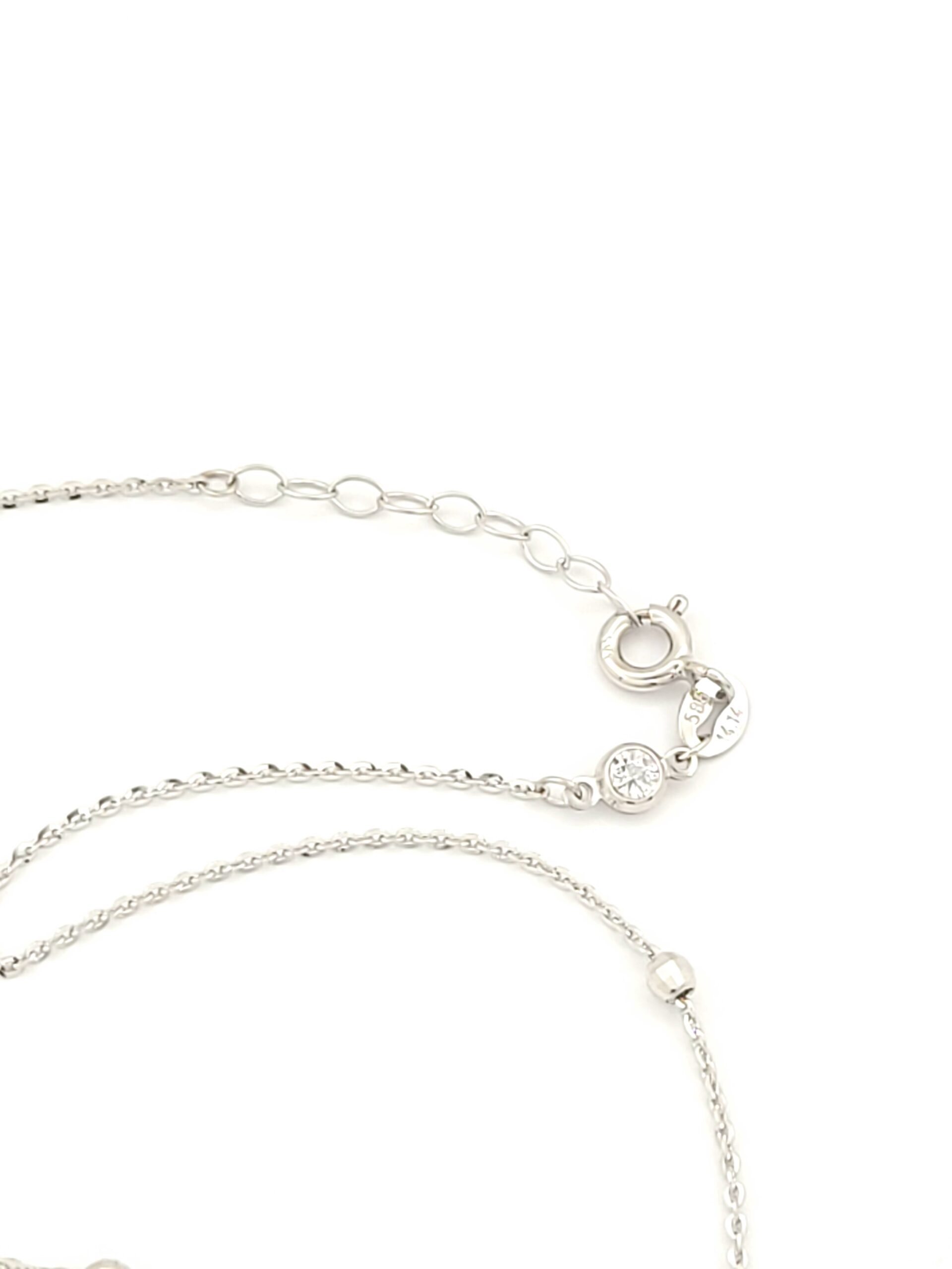 Γυναικείο Λευκόχρυσο Κολιέ Κ14, Με Φύλλα Και Μπίλιες