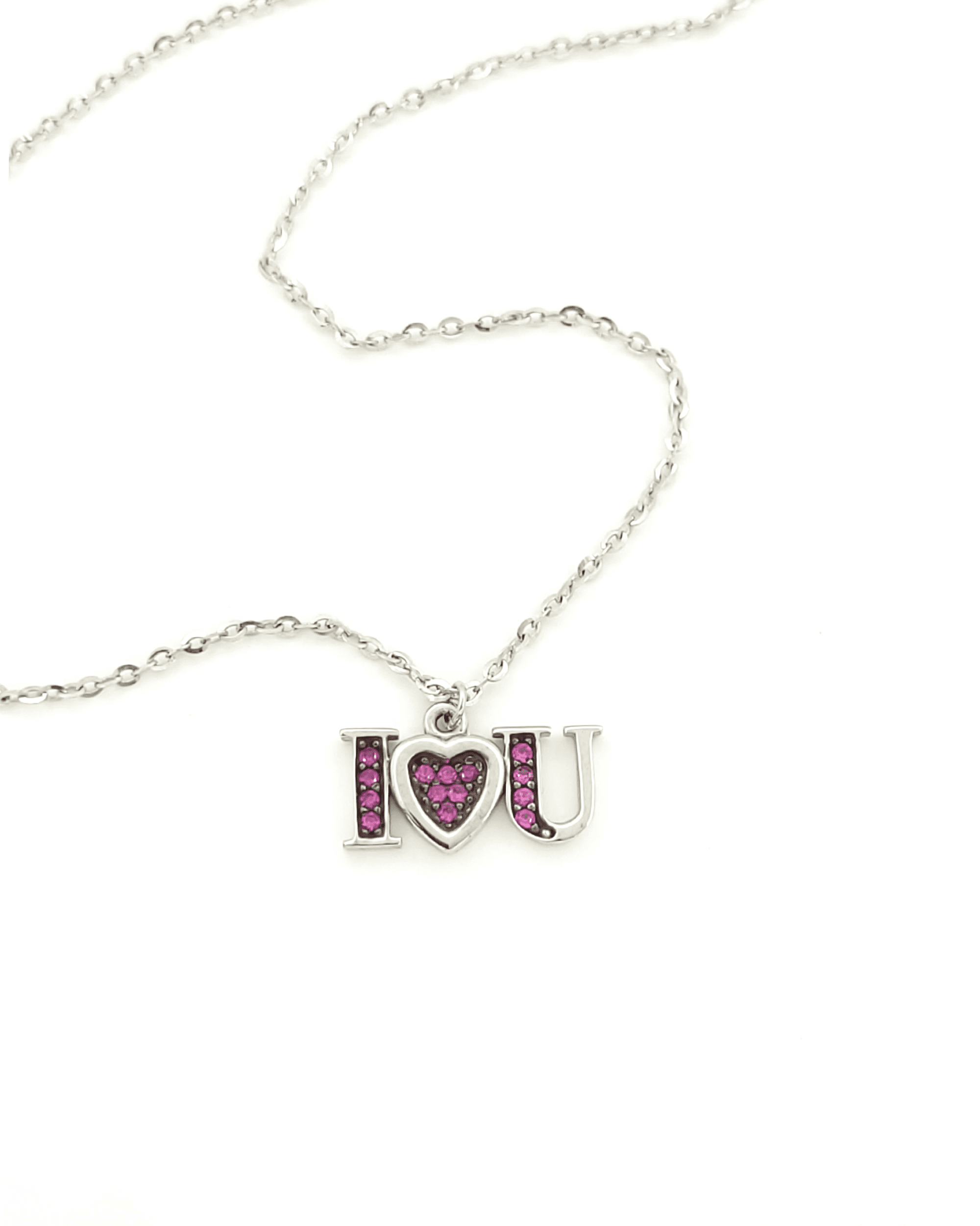 Γυναικείο Λευκόχρυσο Κολιέ Κ9, Με Μοτίφ I LOVE YOU Και Μωβ Ζιργκόν