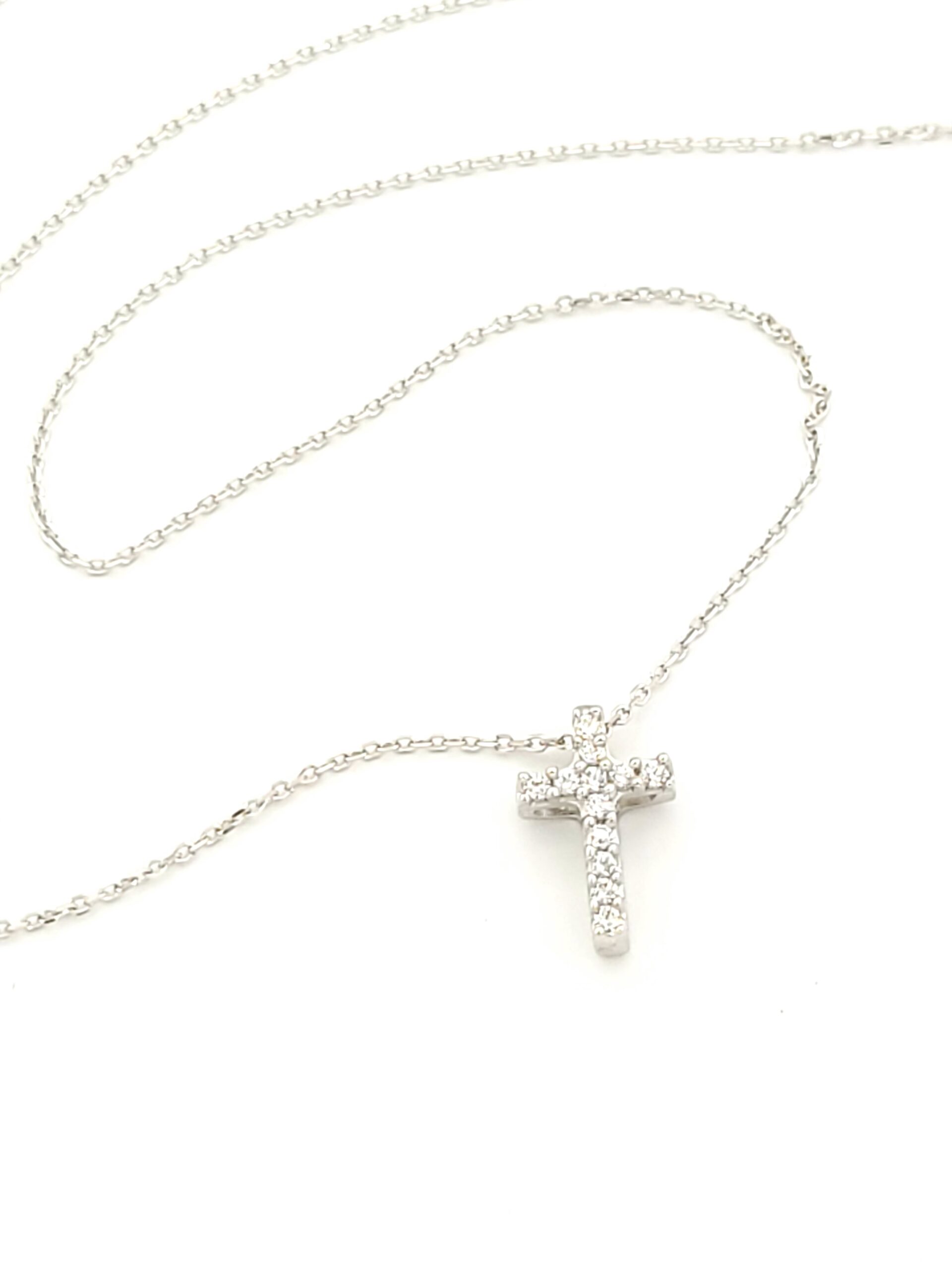 Γυναικείο Λευκόχρυσο Κολιέ Κ9,Με Σταυρό με Λευκά Ζιργκόν