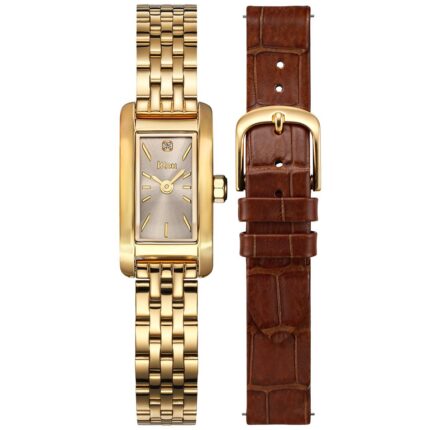 JCou Ariadne Limited Edition Diamond Stainless Steel Gold Bracelet+Brown Strap JU19086-2
