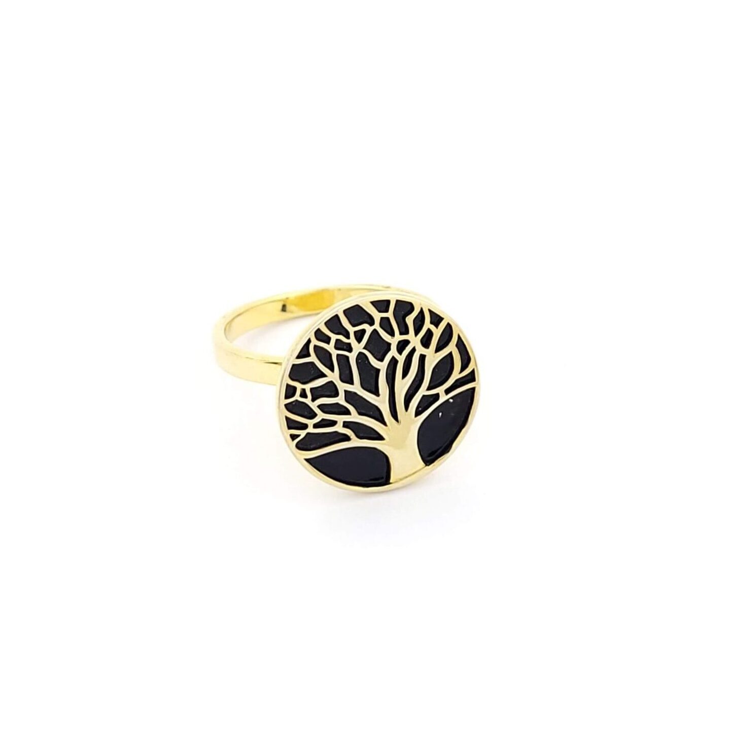 Ασημένιο Επιχρυσωμένο Γυναικείο Δαχτυλίδι,Με το Δέντρο Της Ζωής Με Μαύρο Σμάλτο