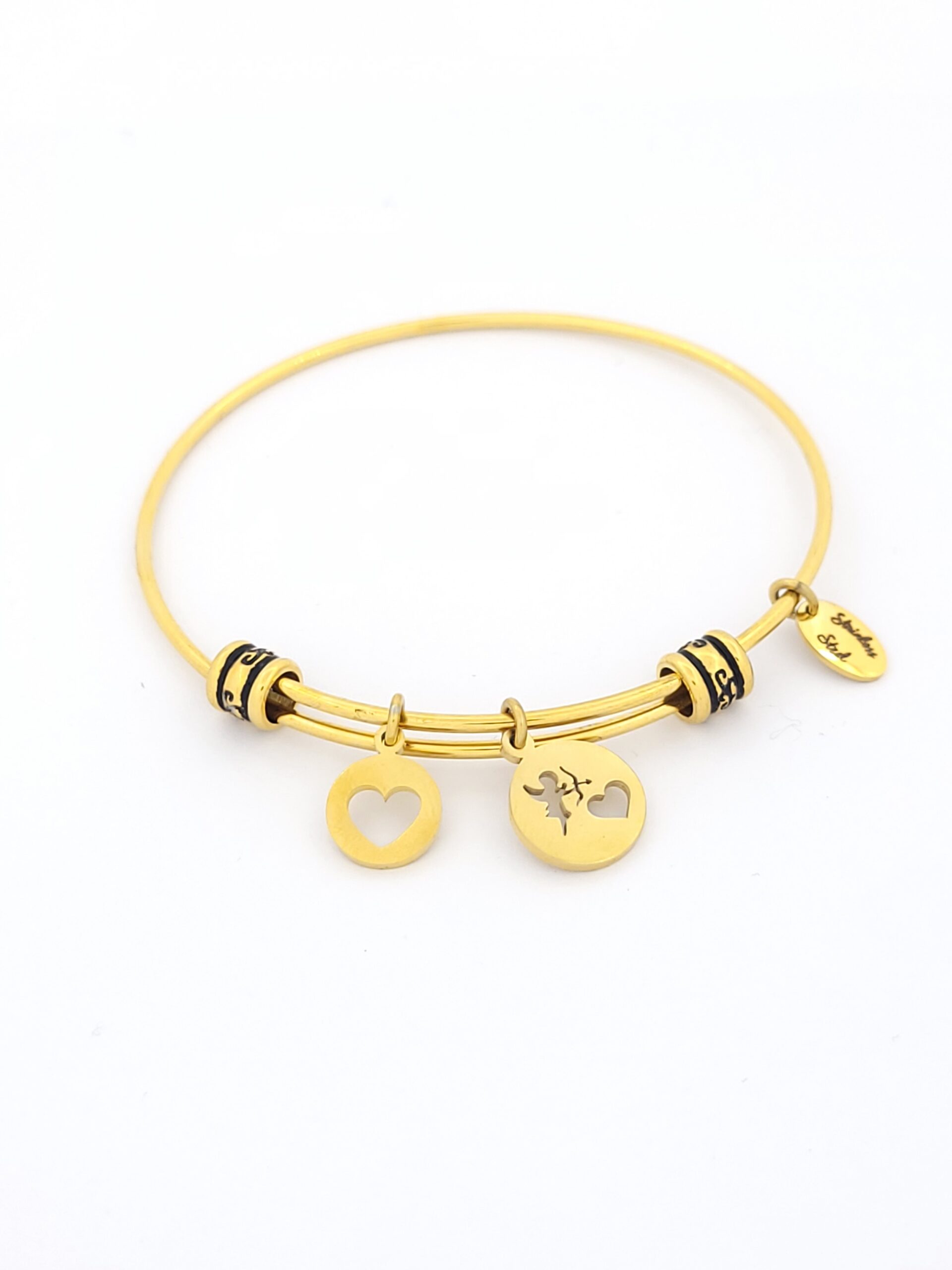 Ατσάλινη Επιχρυσωμένη Χειροπέδα Βραχιόλι Nataliegersa, Με Αγγελάκι Άγιο Βαλεντίνο Και Καρδιά κωδ.104833
