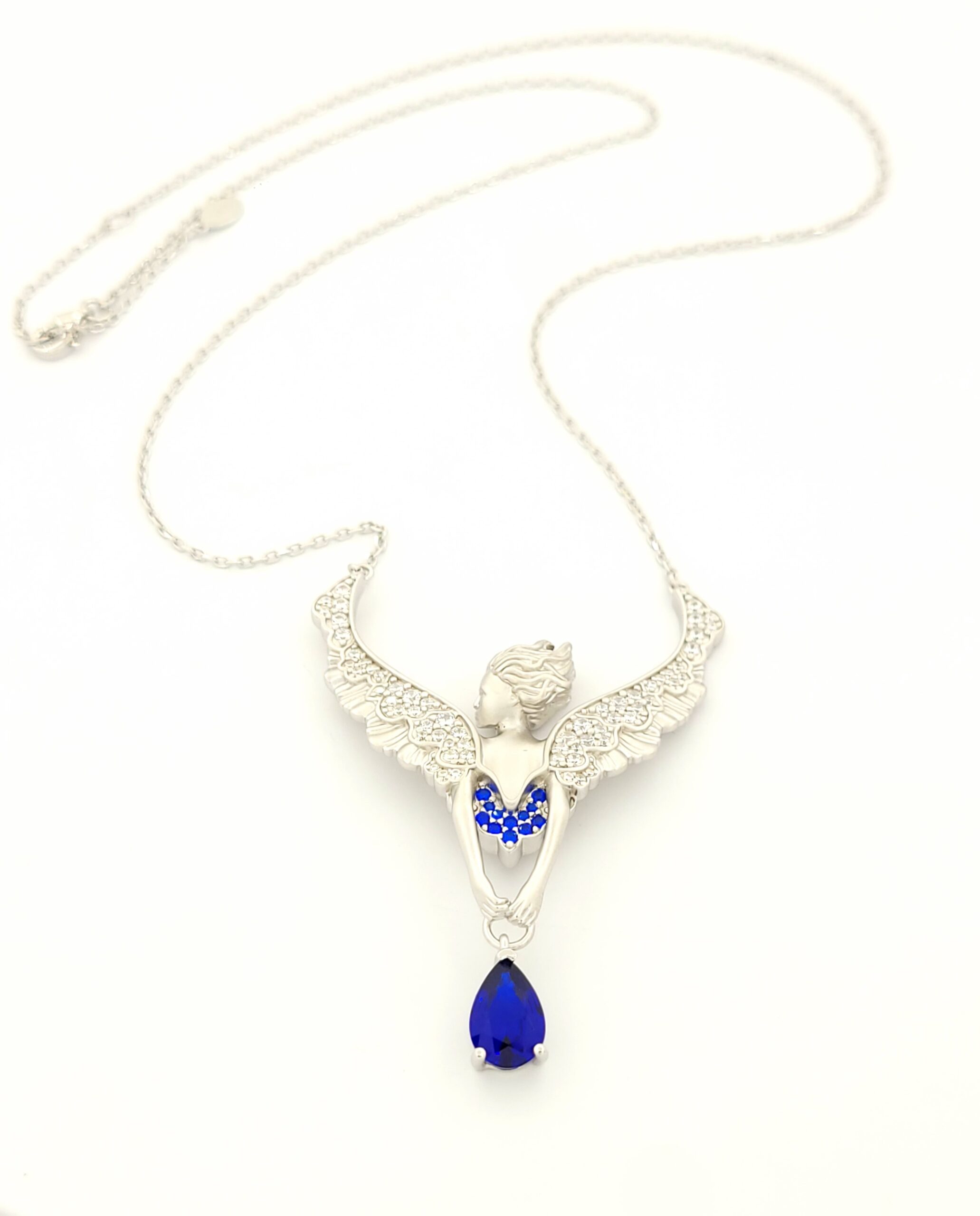 Χρυσό Γυναικείο Κολιέ Κ9, Δάκρυ Με Λευκά Και Μπλε Ζιργκόν κωδ.109338