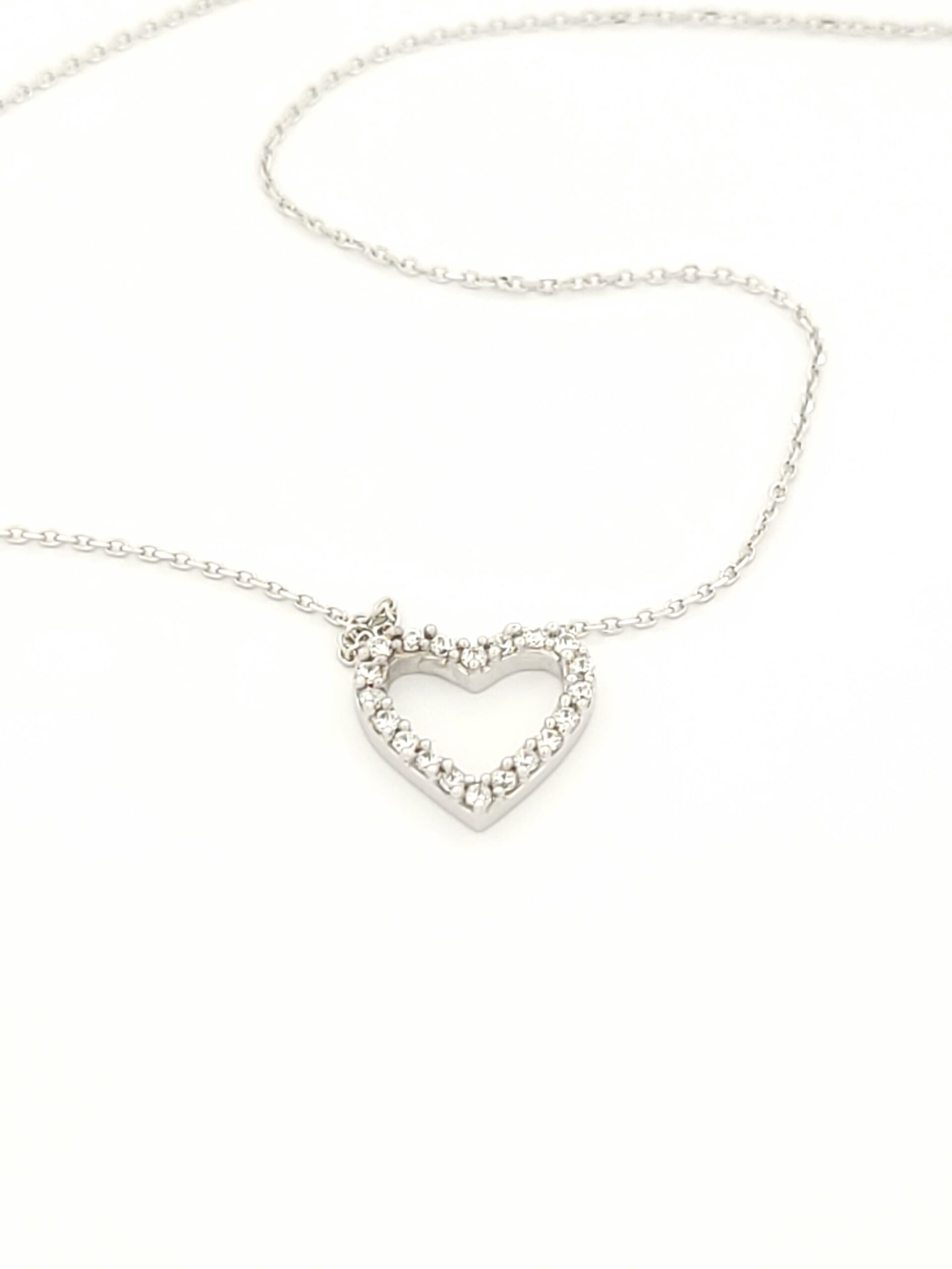 Λευκόχρυσο Γυναικείο Κολιέ Κ9, Με Καρδιά Και Ζιργκόν