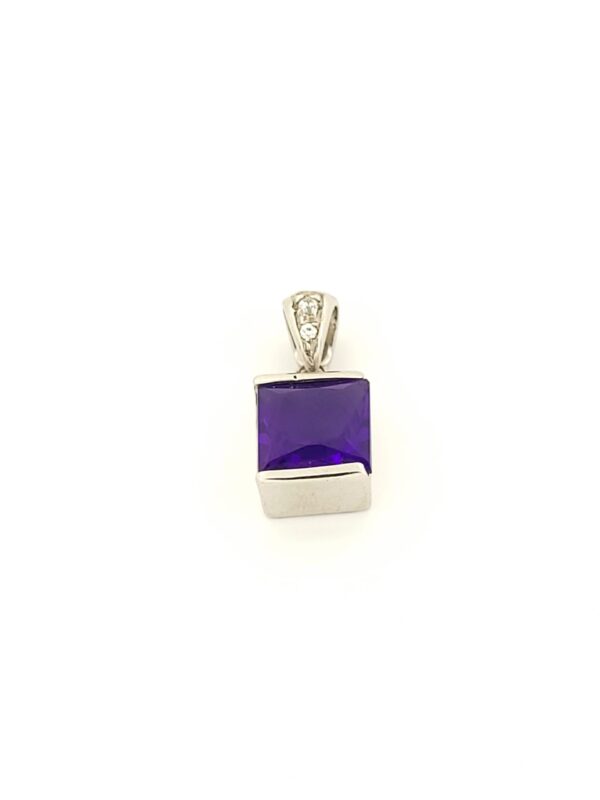 Λευκόχρυσο Γυναικείο Κρεμαστό Κ14, με Μώβ και Λευκά Ζιργκόν