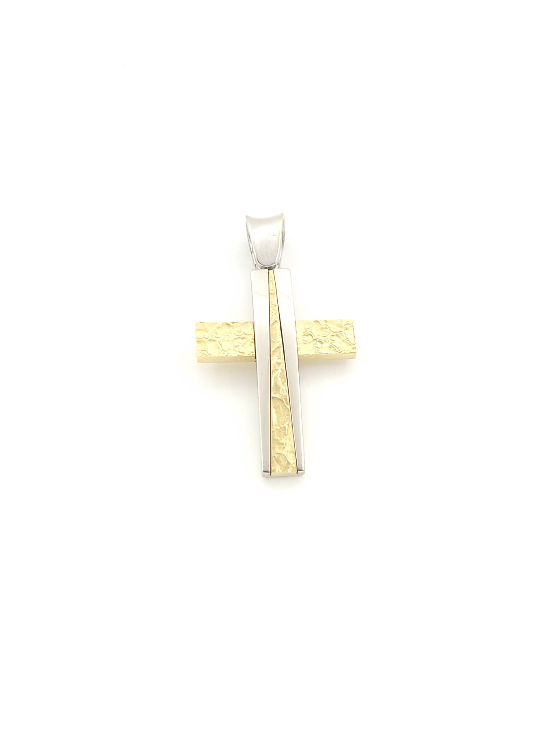 Χρυσός Σταυρός Κ14 Δίχρωμος Διπλής Όψης κωδ.100616