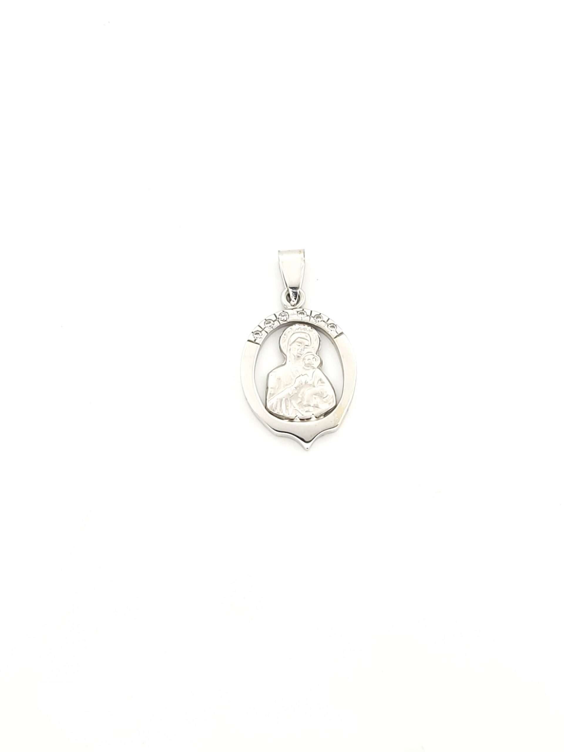 Λευκόχρυσο Κρεμαστό Παναγίτσα K14, Με Ζιργκόν