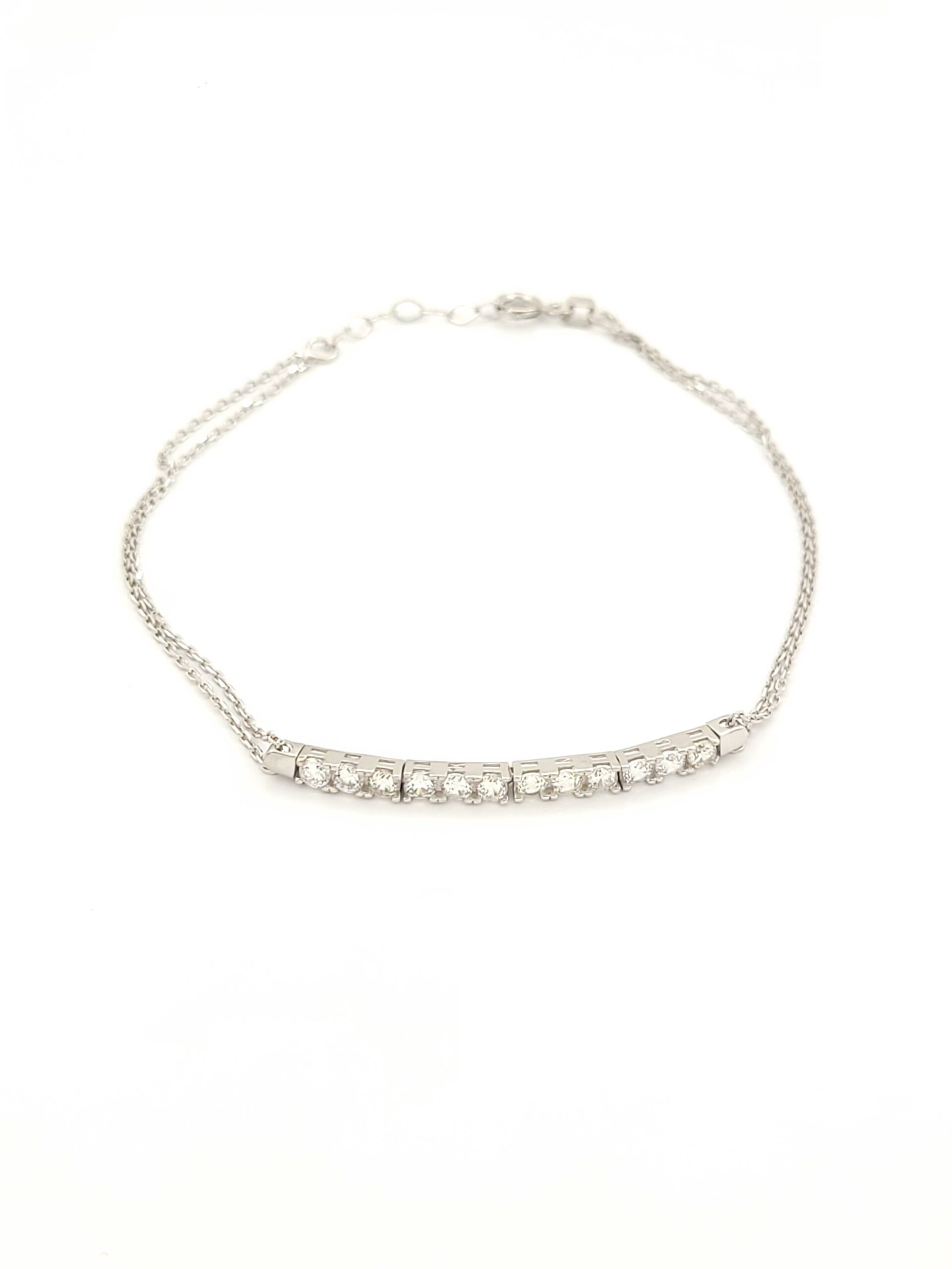 Λευκόχρυσο Γυναικείο Βραχιόλι Κ14, Με Διπλή Αλυσίδα Και Λευκά Ζιργκόν κωδ.107764