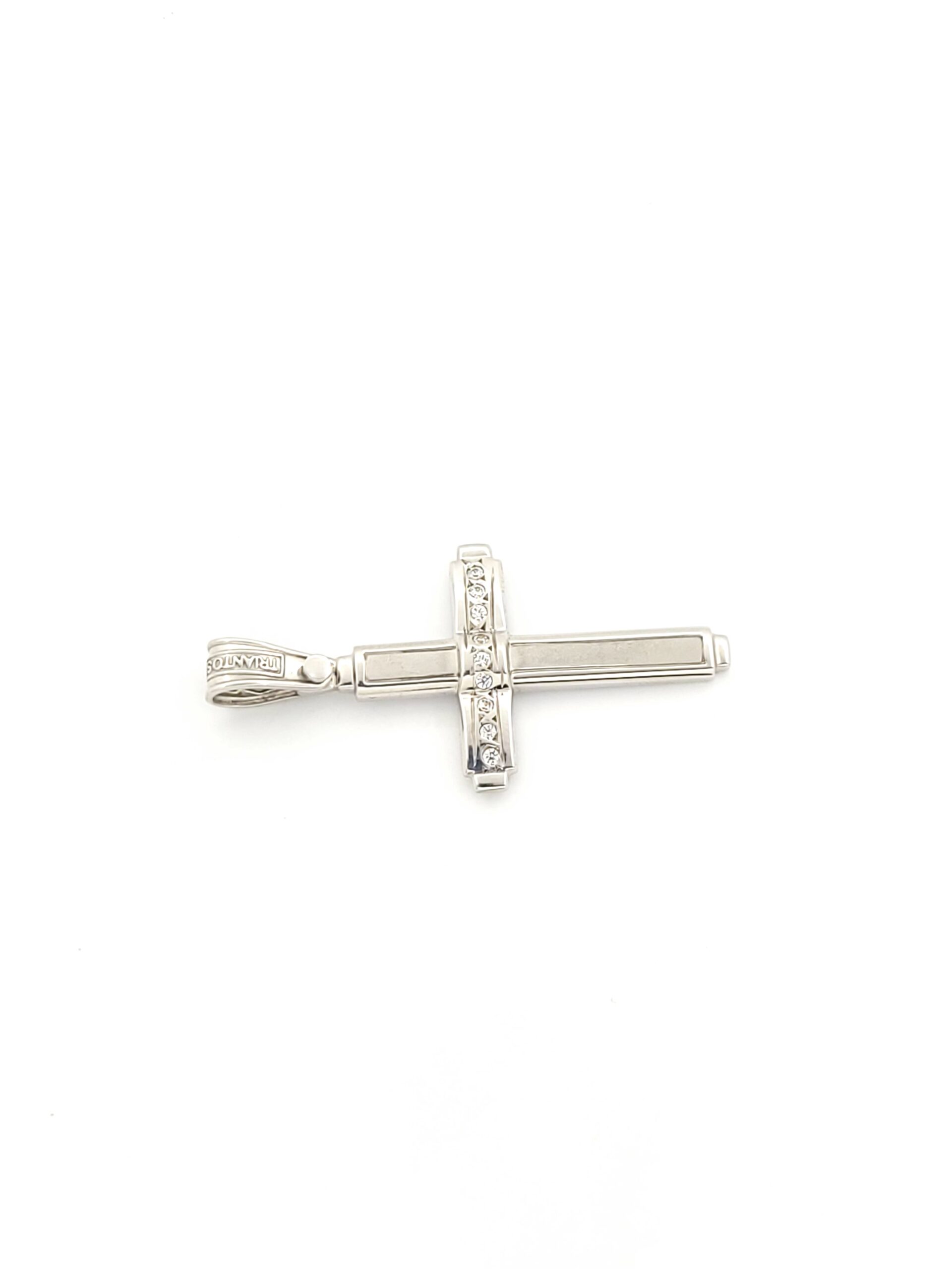 Λευκόχρυσος Γυναικείος Ματ-Λουστρέ Σταυρός Κ14,Με Ζιργκόν κωδ.101963