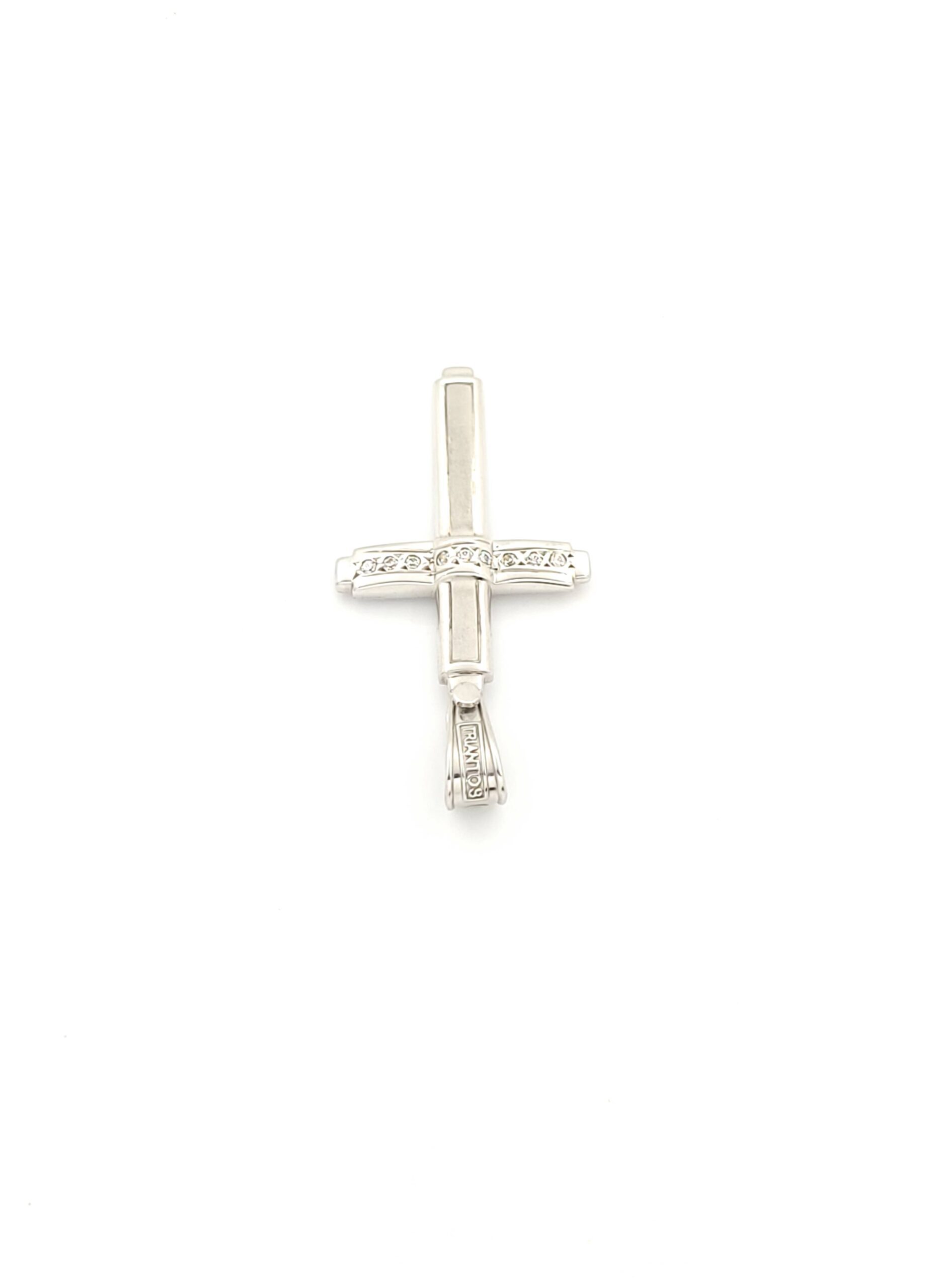 Λευκόχρυσος Γυναικείος Ματ-Λουστρέ Σταυρός Κ14 Τριάντος,Με Ζιργκόν